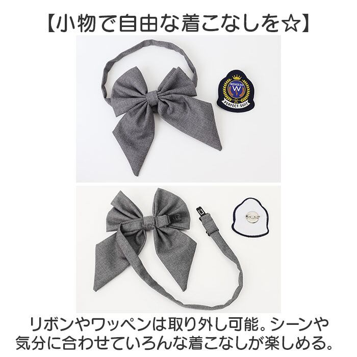 ・リボンやワッペンは取り外し可能。シーンや気分に合わせていろんな着こなしが楽しめる。