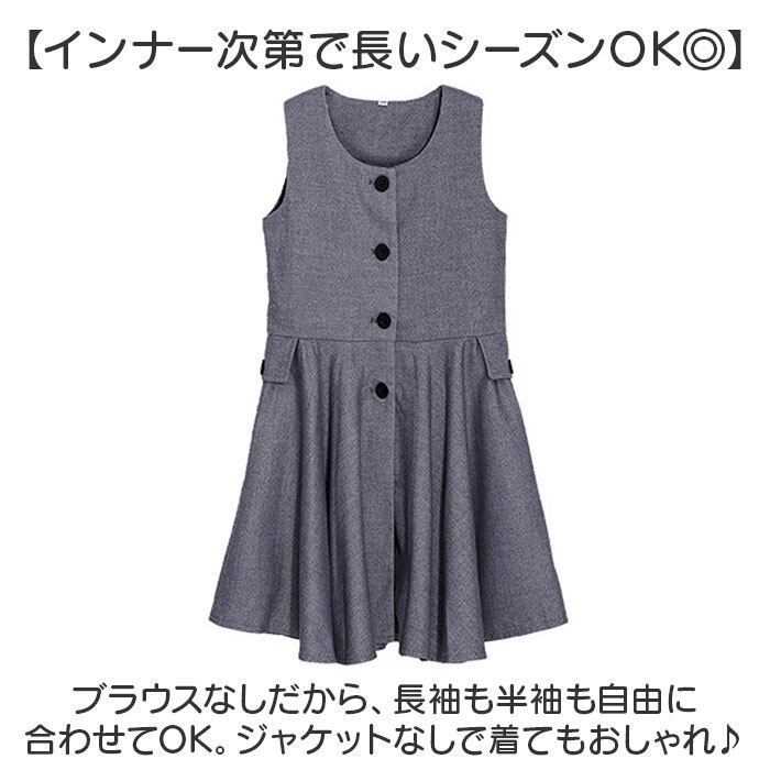 ・ブラウスなしだから、長袖も半袖も自由に合わせてOK。ジャケットなしで着てもおしゃれ♪