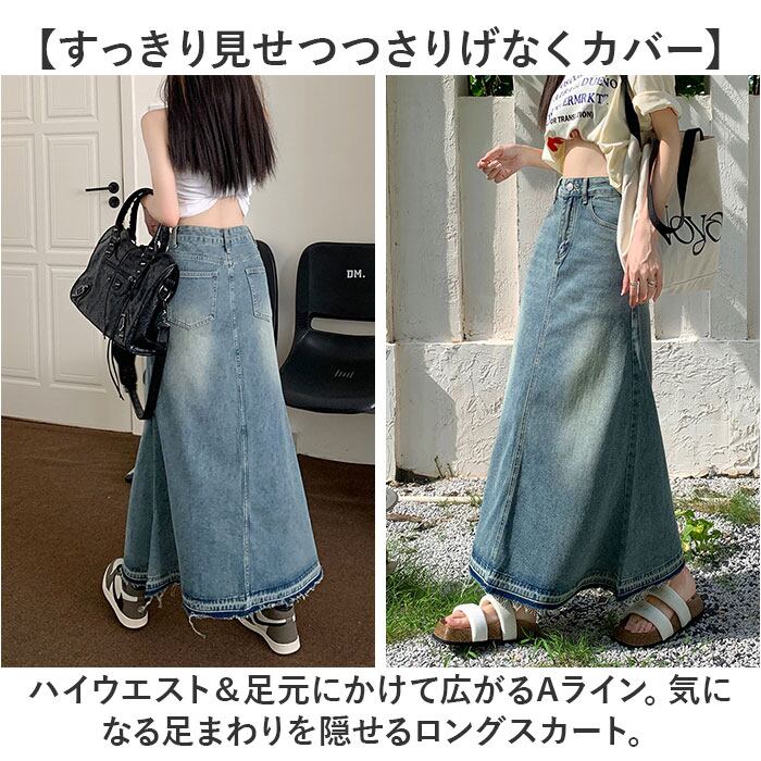 ロングスカート デニム レディース 通販 スカート デニムスカート デニムロングスカート レディーススカート フリンジスカート フリンジデニムスカート フリンジ ロング丈 マキシ ロング ポケット カジュアル きれいめ ボトムス おしゃれ オシャレ