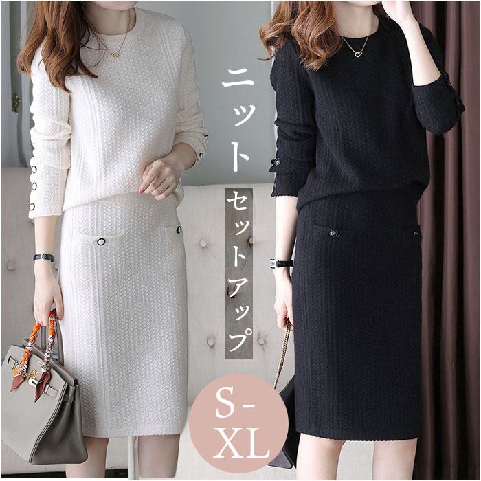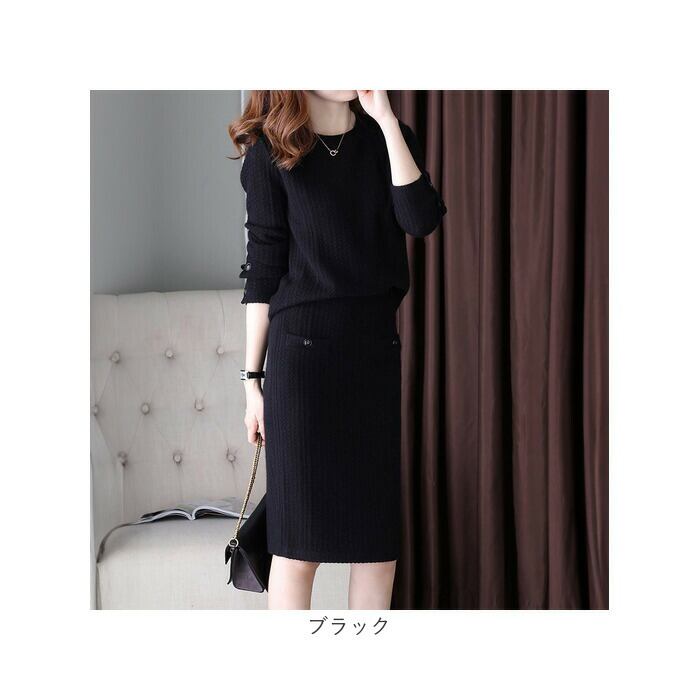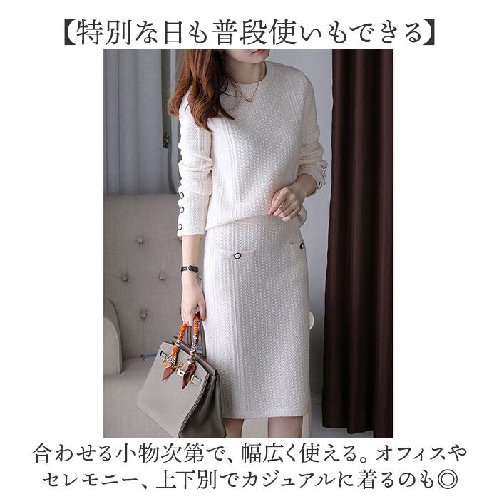ニット セットアップ スカート 通販 ニットスーツ 上下セット 長袖 セーター ひざ丈スカート ツーピース スカートスーツ レディーススーツ きれいめ 上品 女性 卒園式 入学式 卒業式 カジュアル 通勤 オフィス スーツスカート レディースファッション