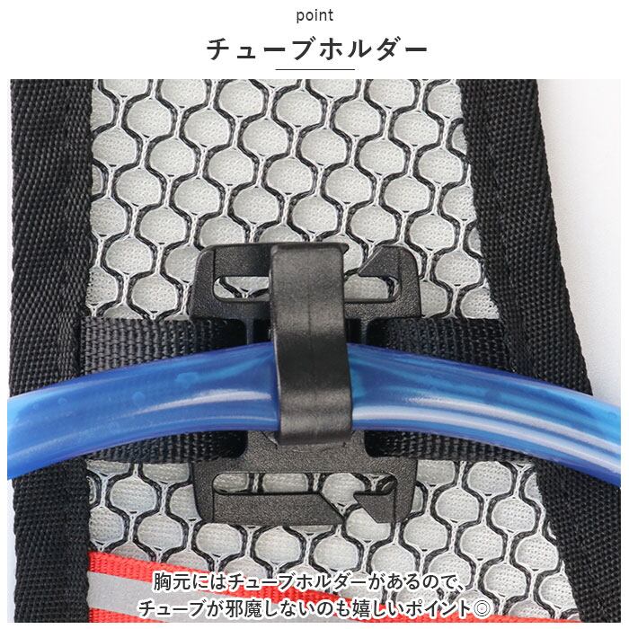 ・胸元にはチューブホルダーがあるので、チューブが邪魔しないのも嬉しいポイント◎