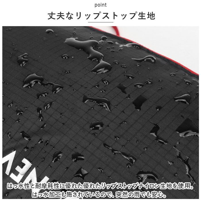 ・はっ水性と耐摩耗性に優れた優れたリップストップナイロン生地を使用。はっ水加工も施されているので、突然の雨でも安心。