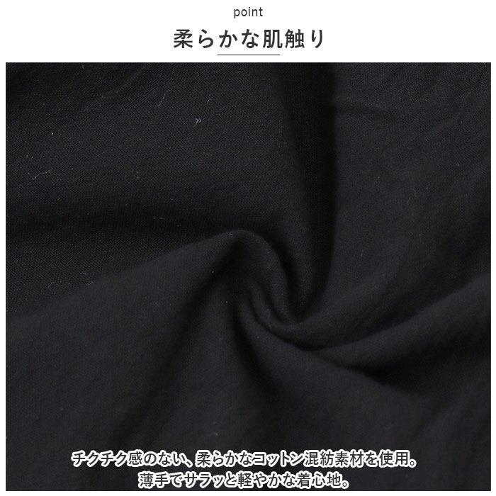 ・チクチク感のない、柔らかなコットン混紡素材を使用。薄手でサラッと軽やかな着心地。