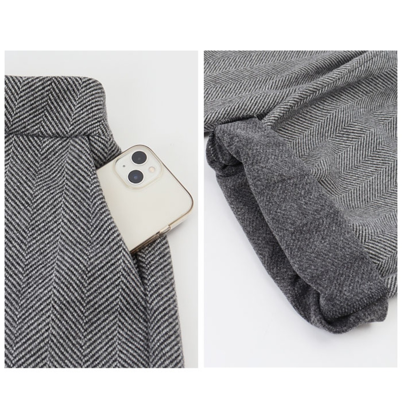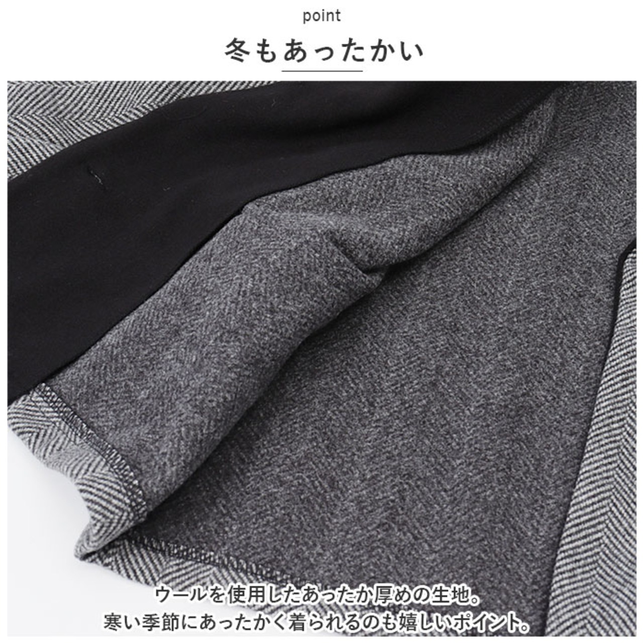 ・ウールを使用したあったか厚めの生地。寒い季節にあったかく着られるのも嬉しいポイント。
