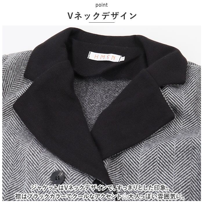 ・ジャケットはVネックデザインで、すっきりとした印象。襟はブラックカラーでクールなアクセント☆大人っぽい雰囲気に。