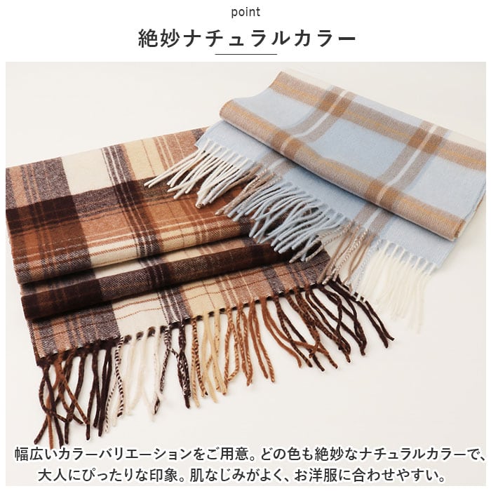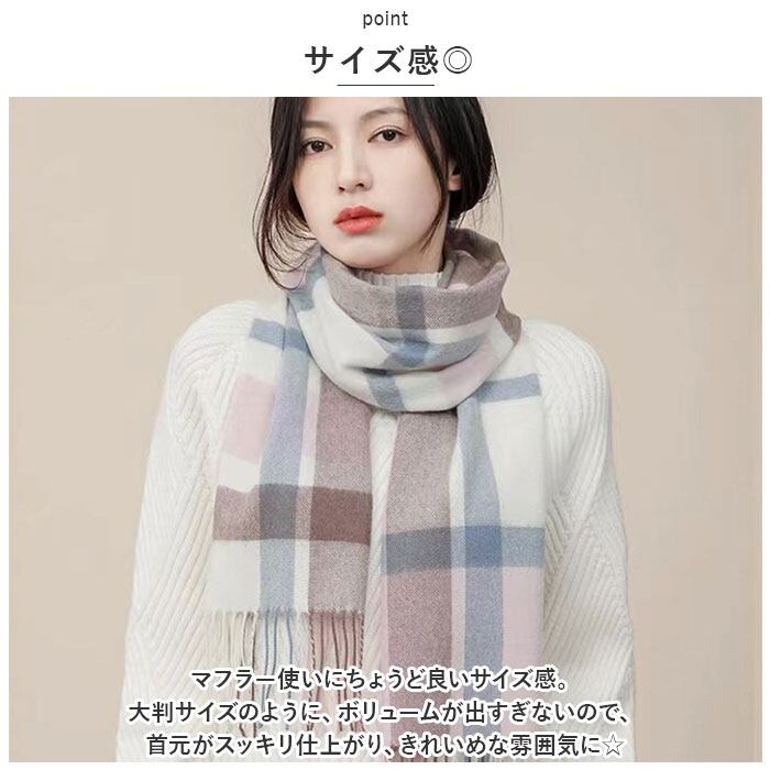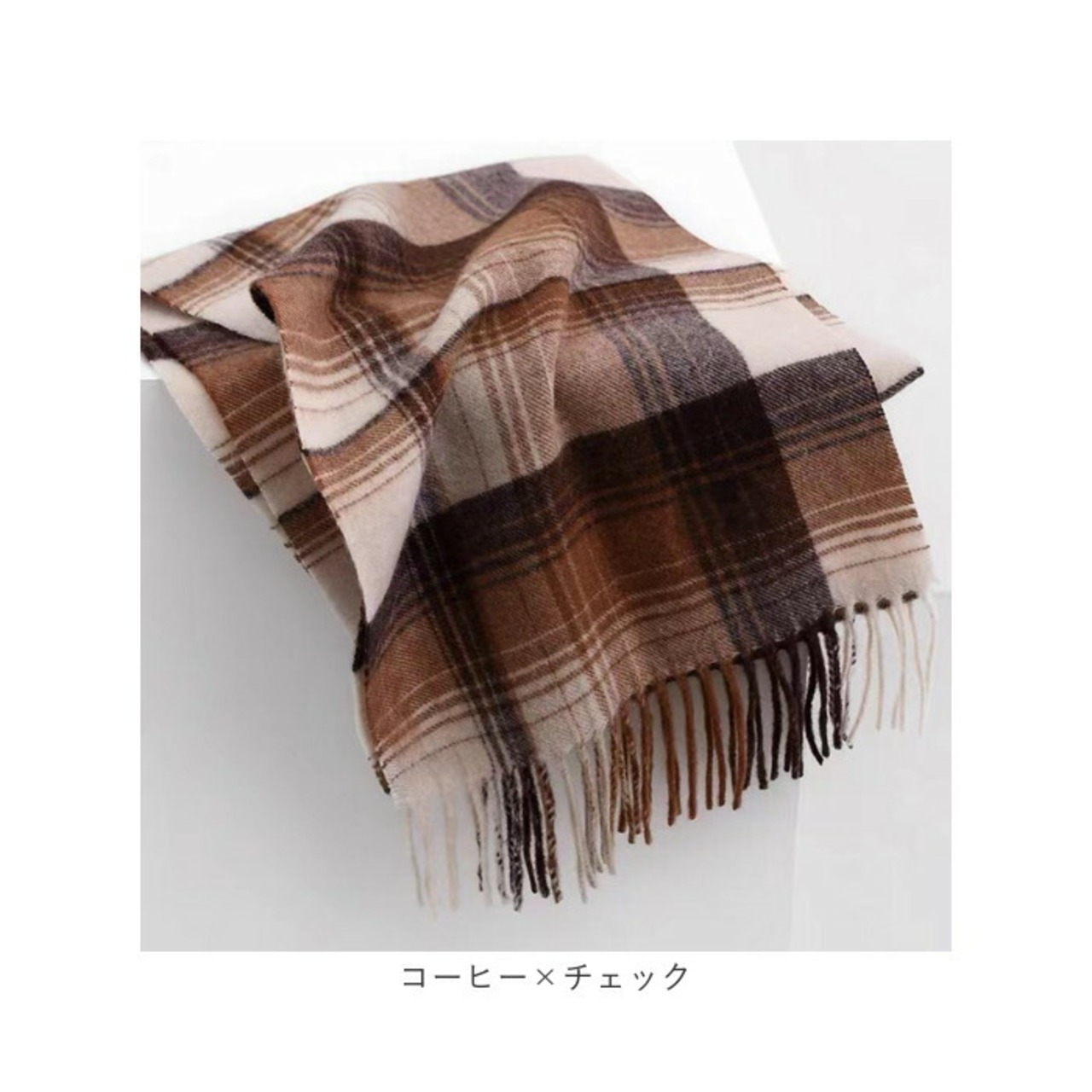 ・マフラー使いにちょうど良いサイズ感。大判サイズのように、ボリュームが出すぎないので、首元がスッキリ仕上がり、きれいめな雰囲気に☆