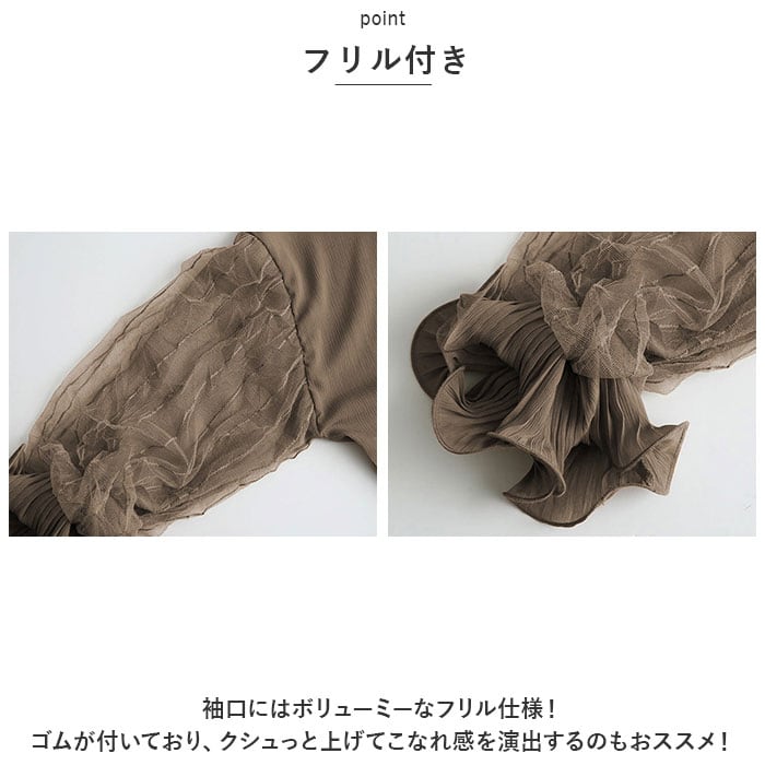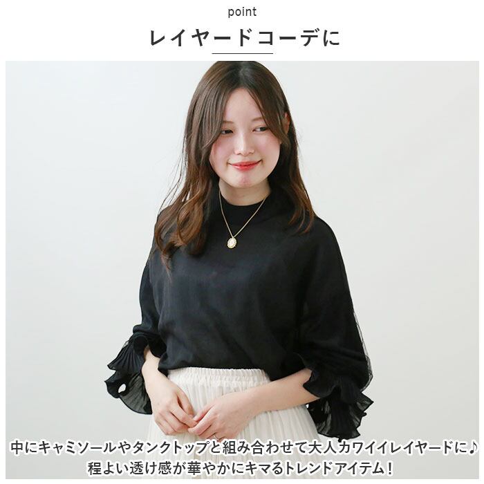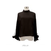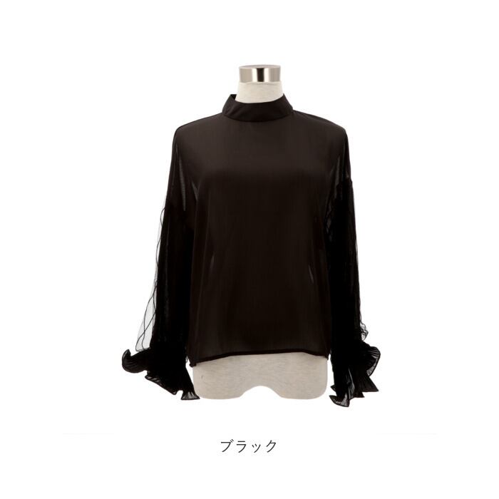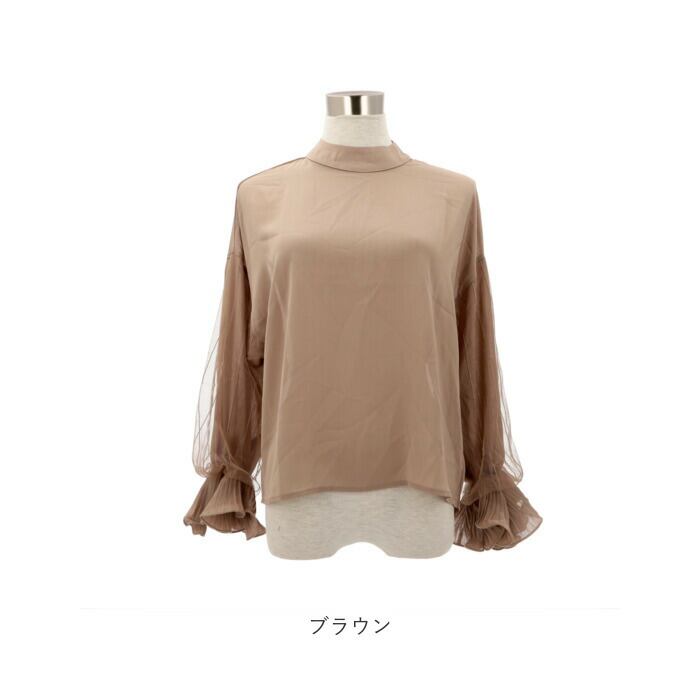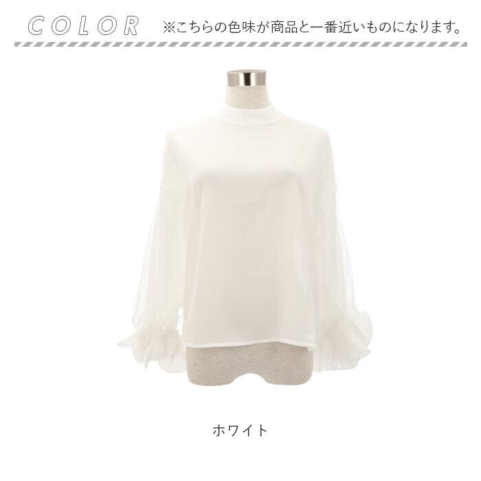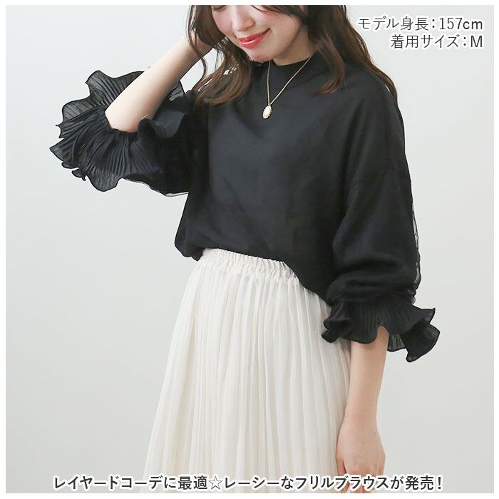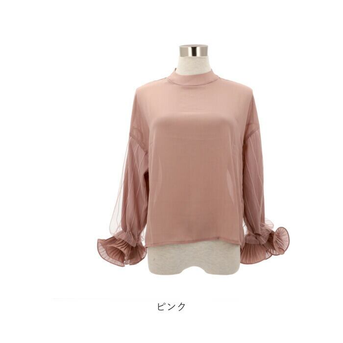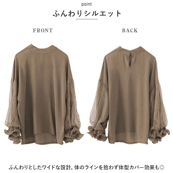 ブラウス シャツ 長袖 レディース 通販 カットソー チュニック トップス フリル スタンドカラー ぽわん袖 透け感 シフォン レース 通勤 通学 お出かけ お呼ばれ きれいめ 上品 おしゃれ オシャレ かわいい カワイイ 体型カバー