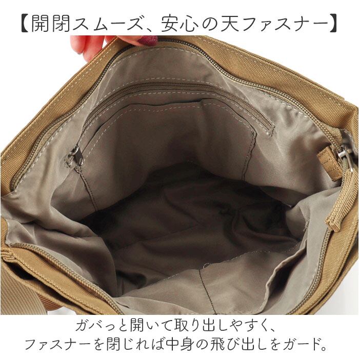 ・ガバっと開いて取り出しやすく、ファスナーを閉じれば中身の飛び出しをガード。