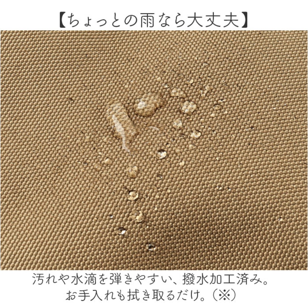 ・汚れや水滴を弾きやすい、撥水加工済み。お手入れも拭き取るだけ。
