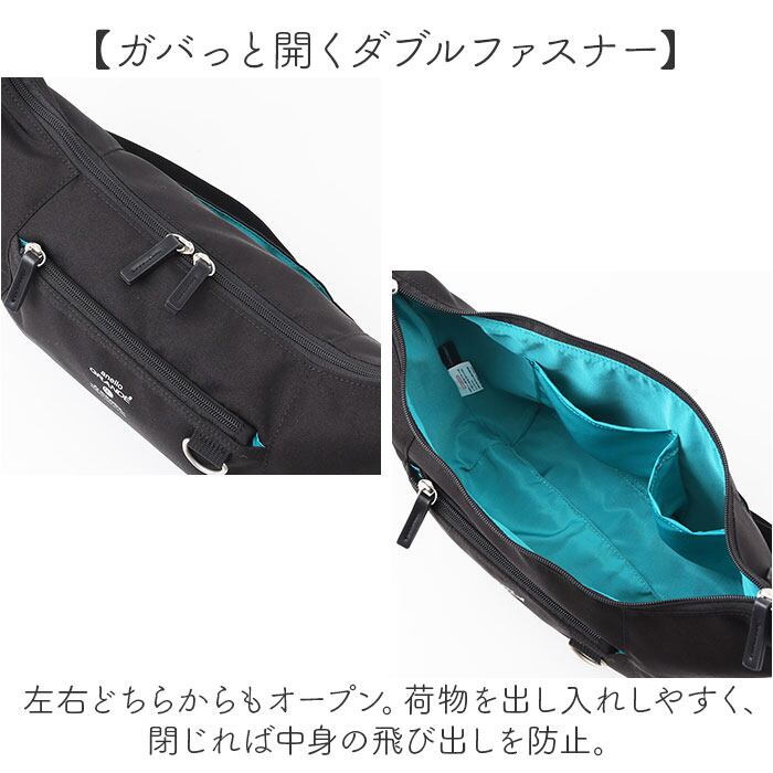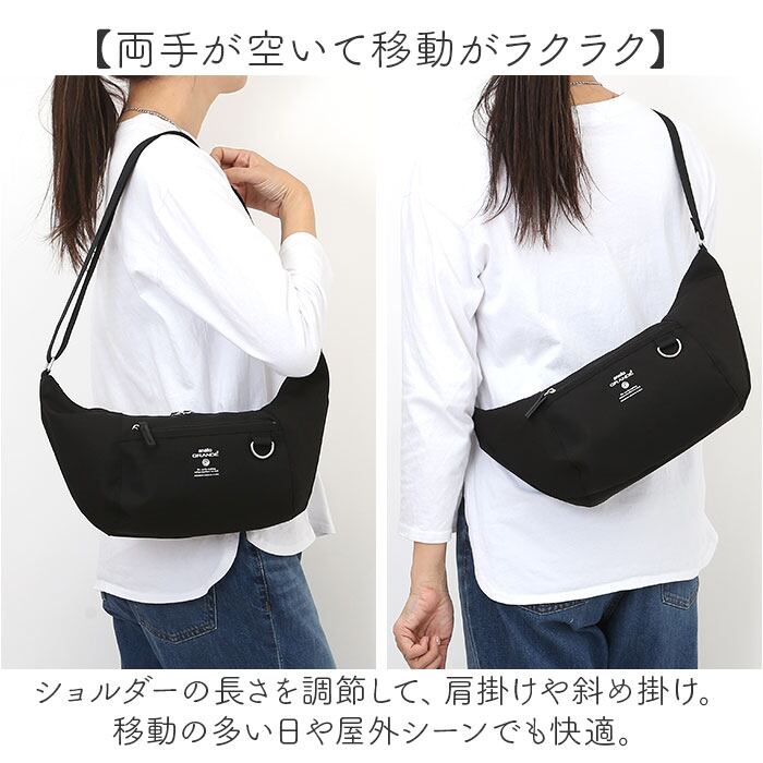 ・ショルダーの長さを調節して、肩掛けや斜め掛け。移動の多い日や屋外シーンでも快適。