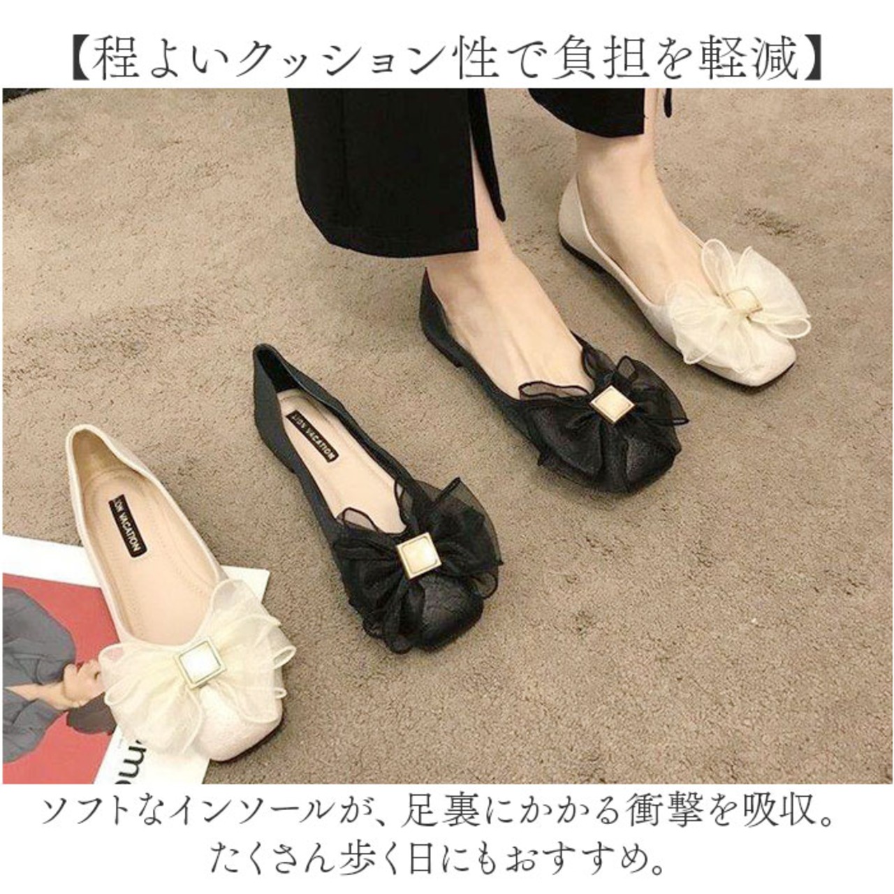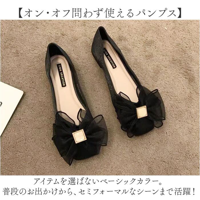 リボンパンプス シューズ ペタンコ