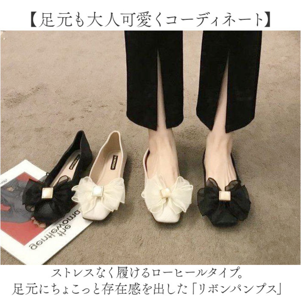 ・ストレスなく履けるローヒールタイプ。足元にちょこっと存在感を出した「リボンパンプス」。