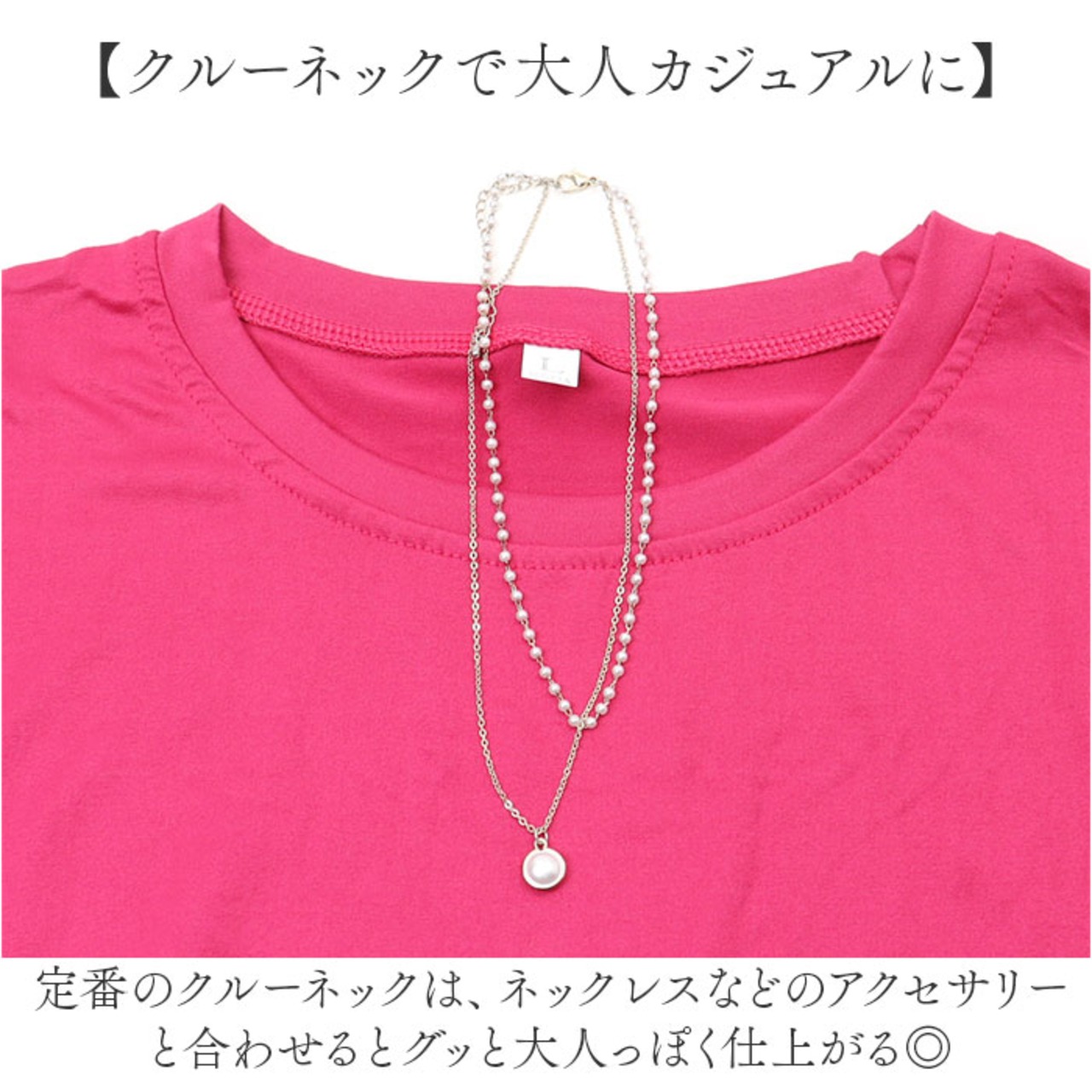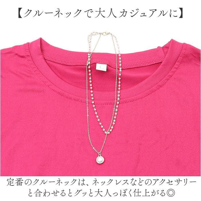 ・定番のクルーネックは、ネックレスなどのアクセサリーと合わせるとグッと大人っぽく仕上がる◎