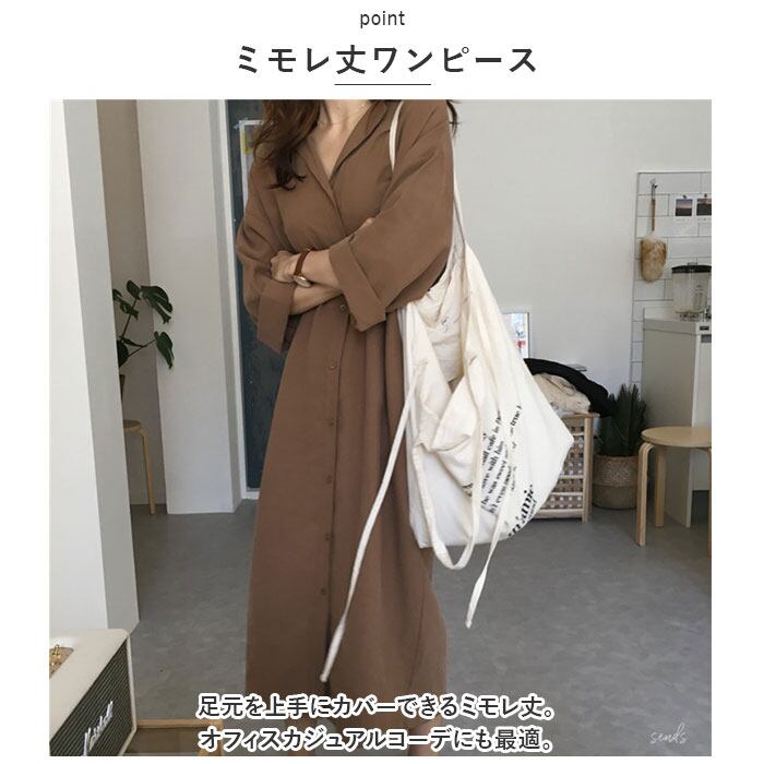 シャツワンピース 長袖 ロング 通販 シャツワンピ ミモレワンピ シャツ ワンピース ロングシャツ ロングワンピース チュニック ミモレ丈 着回し 無地 カジュアル シンプル きれいめ おしゃれ ふんわり