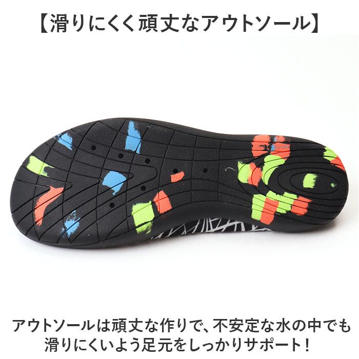 ・アウトソールは頑丈な作りで、不安定な水の中でも滑りにくいよう足元をしっかりサポート!