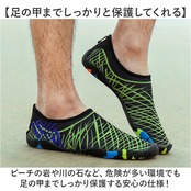 ・ビーチの岩や川の石など、危険が多い環境でも足の甲までしっかり保護する安心の仕様!