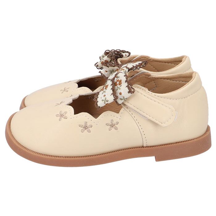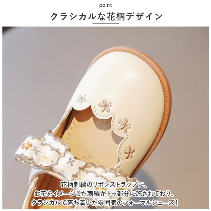 ・花柄刺繍のリボンストラップに、お花をイメージした刺繍がトゥ部分に施されており、クラシカルで落ち着いた雰囲気のフォーマルシューズ!