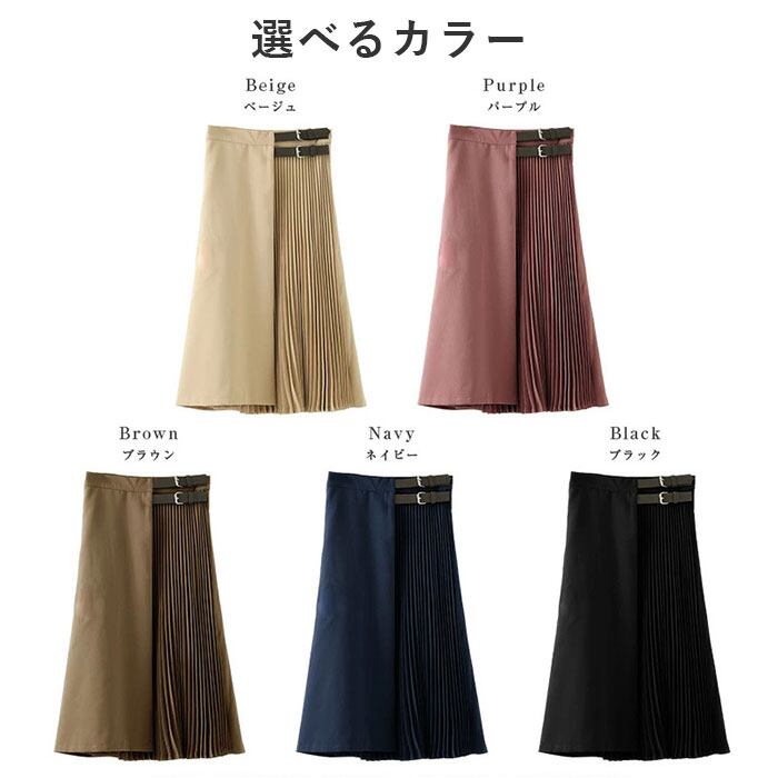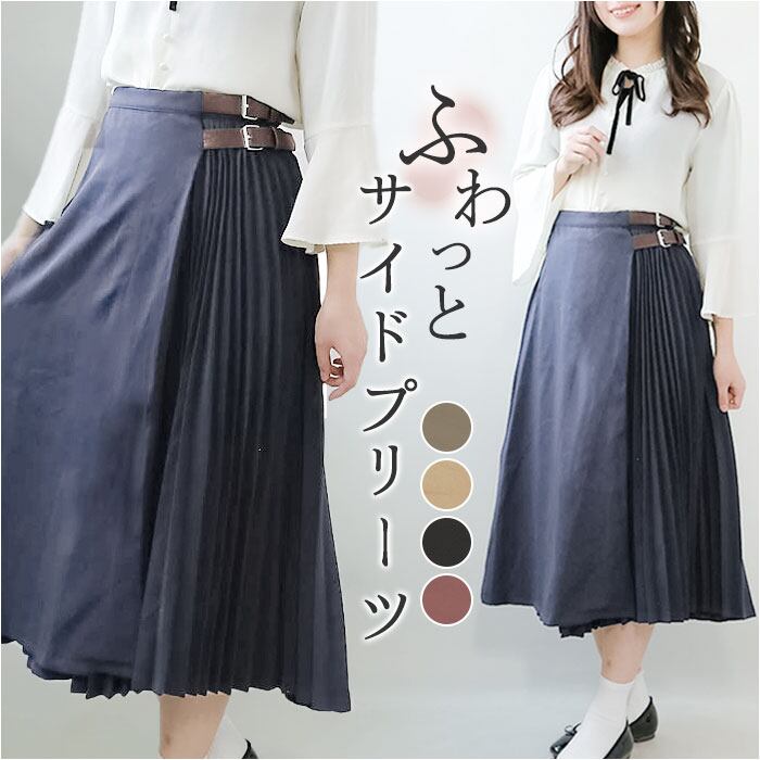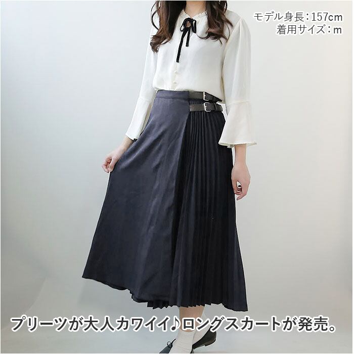 ・サイドのプリーツ加工とラップスカート♪左右で表情を変えることによりトレンド感あふれる仕上がりに。