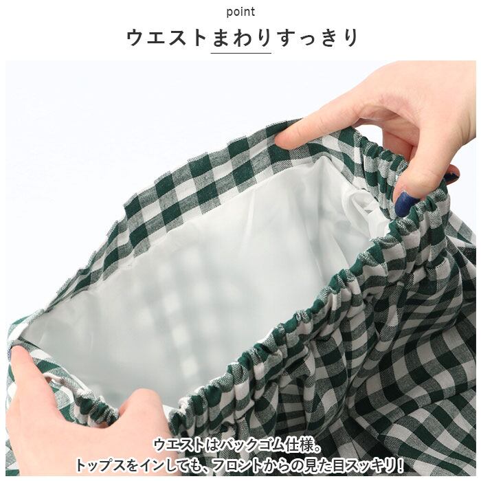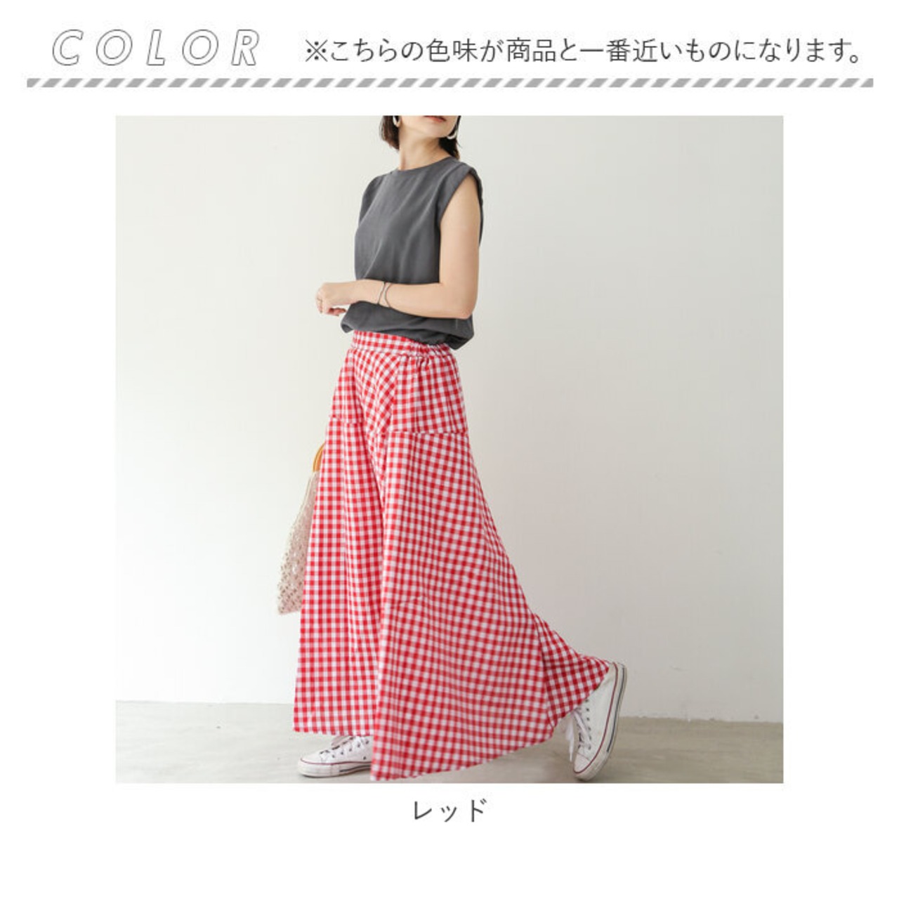・存在感のあるギンガムチェック柄♪カジュアルスタイルはもちろん、トップス次第でちょっぴり大人な雰囲気にも仕上がる1着。