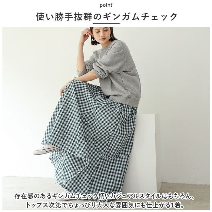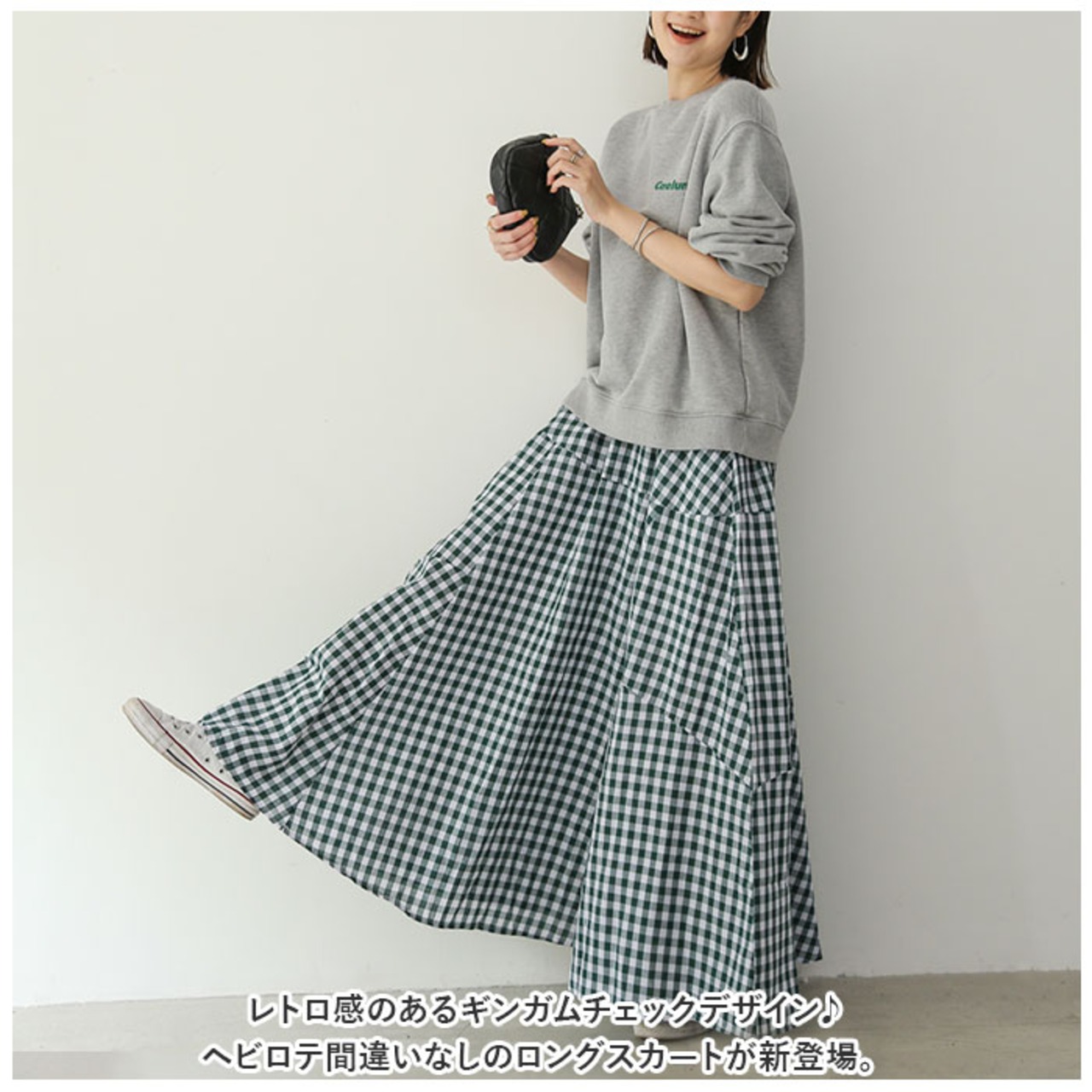 ・レトロ感のあるギンガムチェックデザイン♪ヘビロテ間違いなしのロングスカートが新登場。