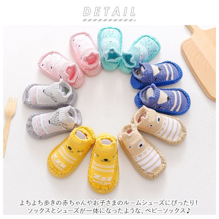 ・よちよち歩きの赤ちゃんやお子さまのルームシューズにぴったり!ソックスとシューズが一体になったような、ベビーソックス♪