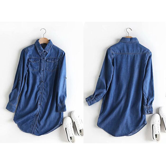デニム シャツ レディース 通販 デニムシャツ カジュアルシャツ シャツワンピース ロングシャツ ブラウス ロング ロング丈 長袖 ゆったり 体型カバー 無地 春 秋 通勤 通学 カジュアル 大人 かわいい きれいめ トップス おしゃれ オシャレ