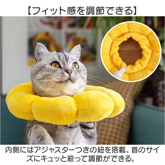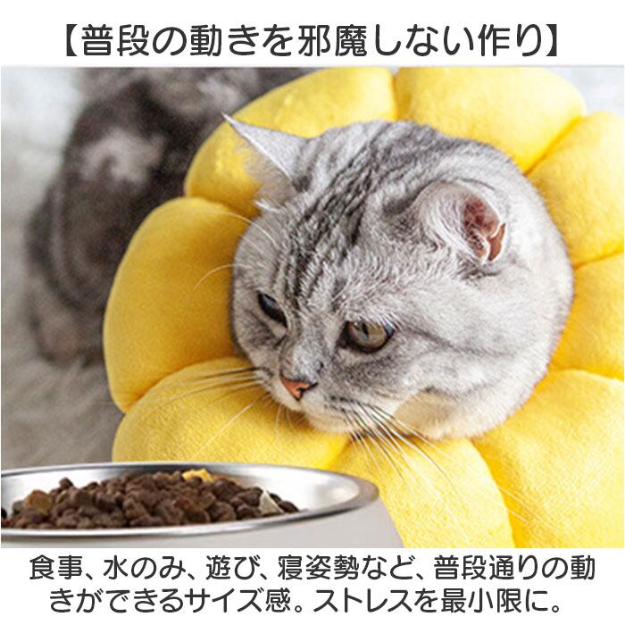 ・食事、水のみ、遊び、寝姿勢など、普段通りの動きができるサイズ感。ストレスを最小限に。