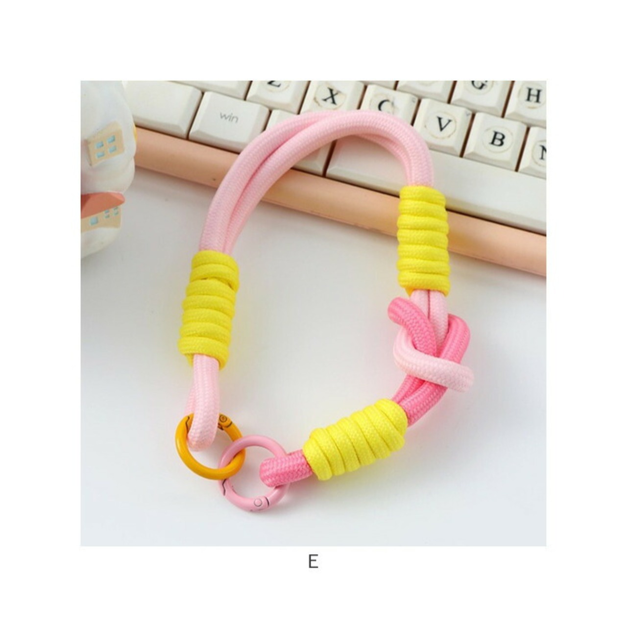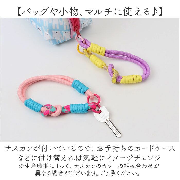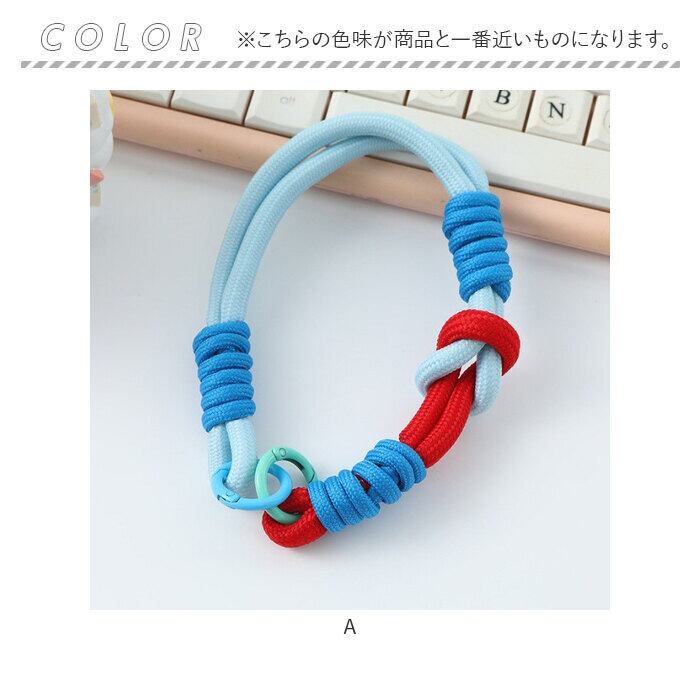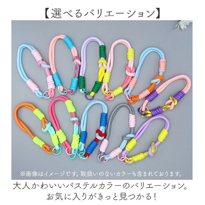 ・カラフルなロープの組み合わせが目を惹くかわいいデザインのストラップ。