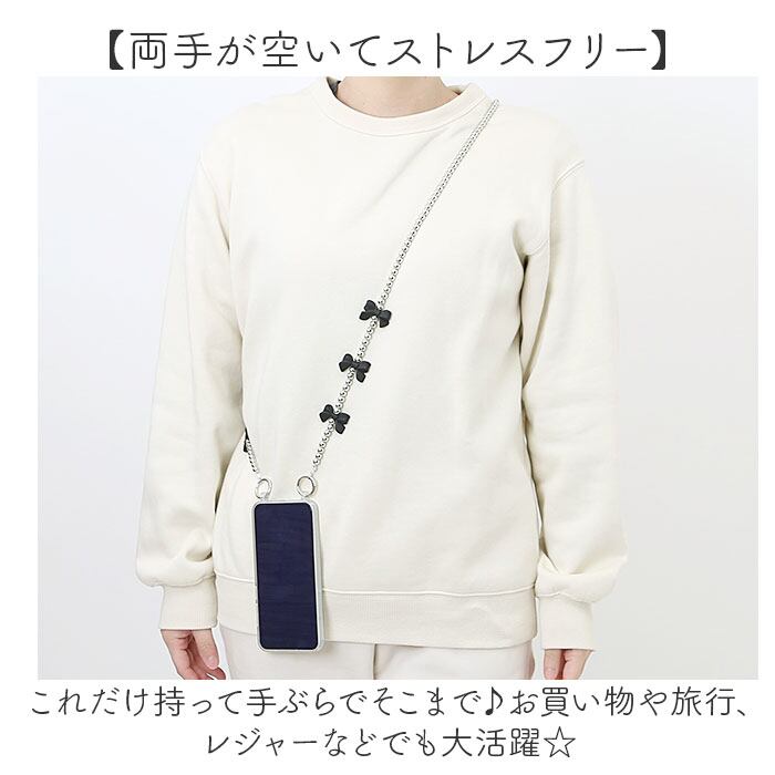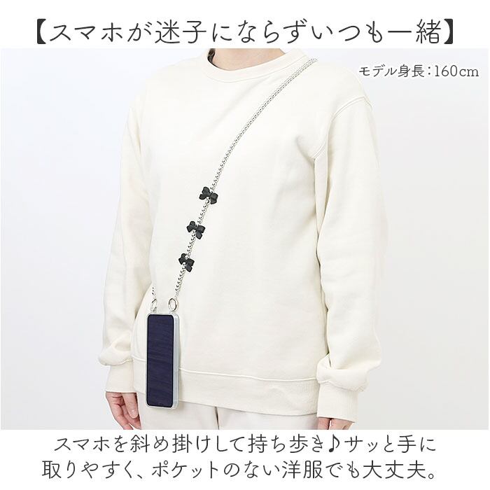 ・スマホを斜め掛けして持ち歩き♪サッと手に取りやすく、ポケットのない洋服でも大丈夫。