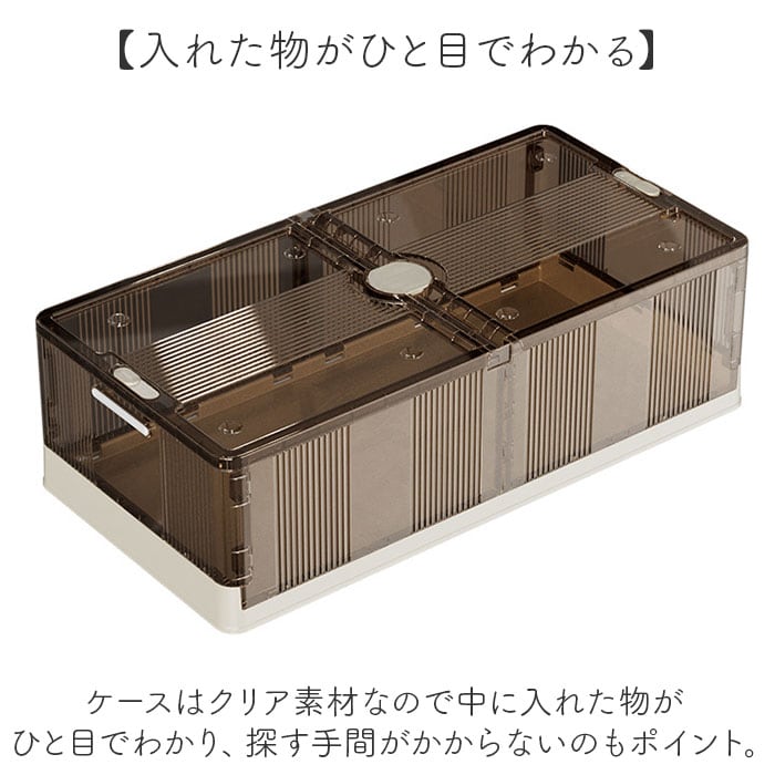 ・ケースはクリア素材なので中に入れた物がひと目でわかり、探す手間がかからないのもポイント。