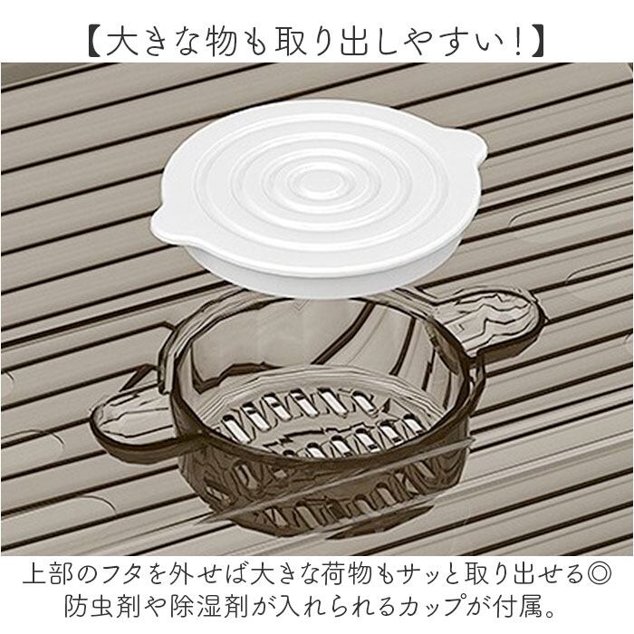 ・上部のフタを外せば大きな荷物もサッと取り出せる◎防虫剤や除湿剤が入れられるカップが付属。