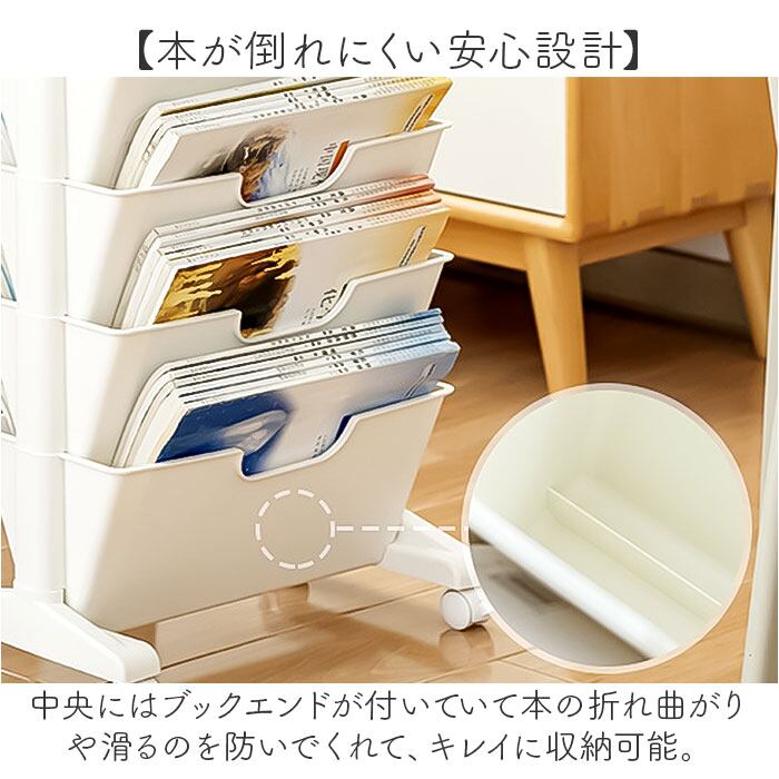・中央にはブックエンドが付いていて本の折れ曲がりや滑るのを防いでくれて、キレイに収納可能。