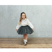 ・ゆったりとしたパフスリーブの長袖も、柔らかなシルエットで大人びた雰囲気を演出するのに一役買っています。