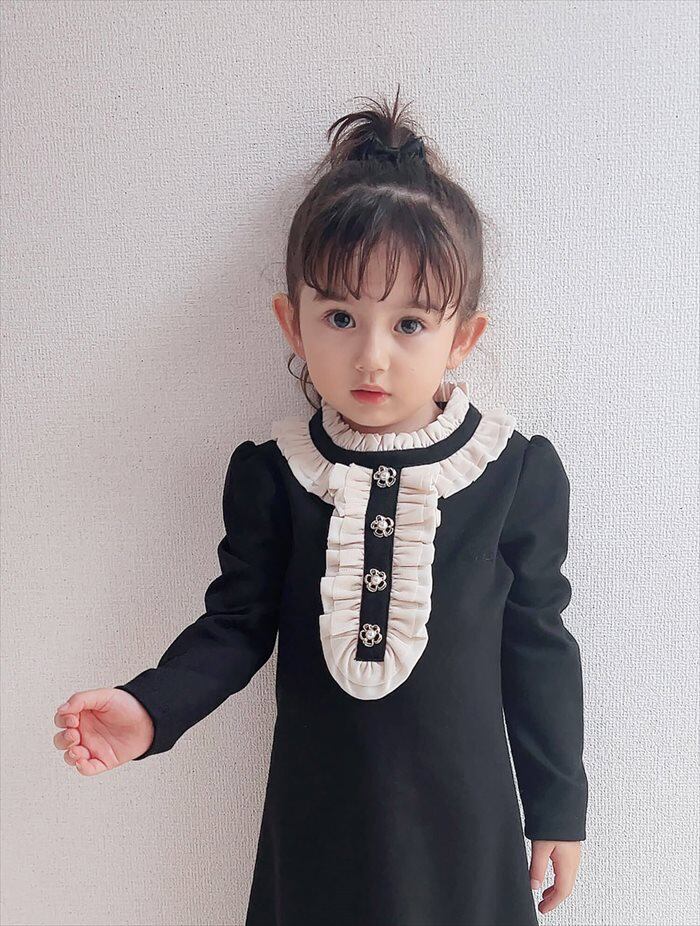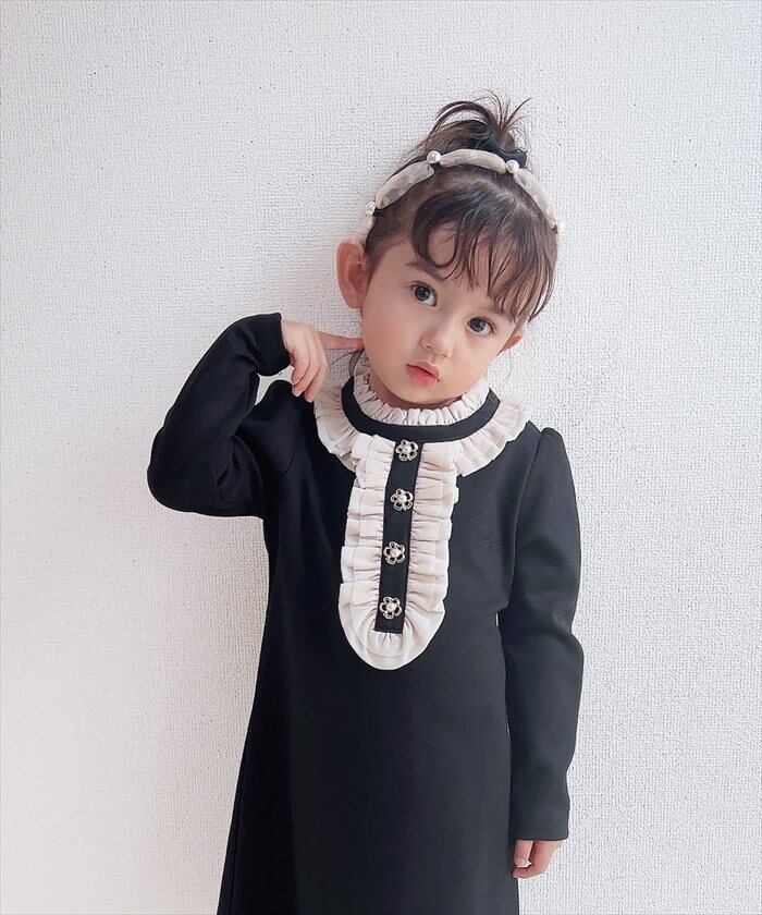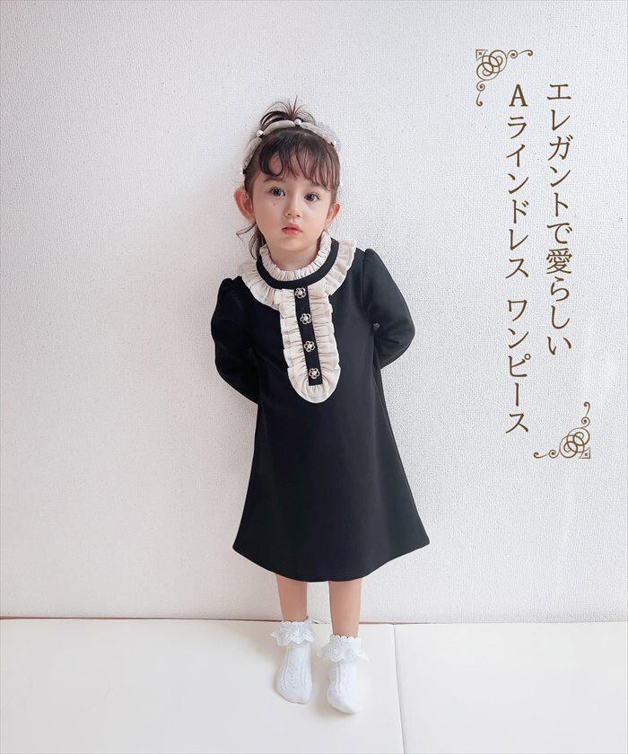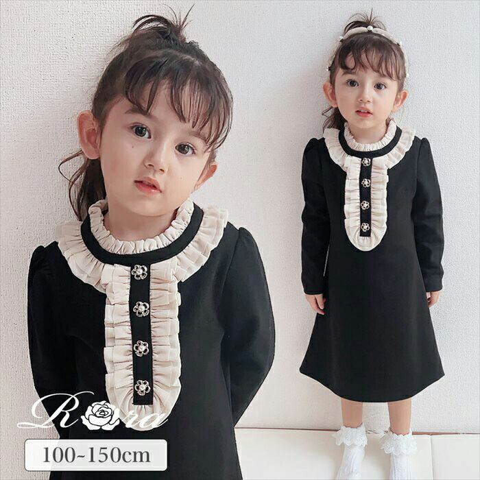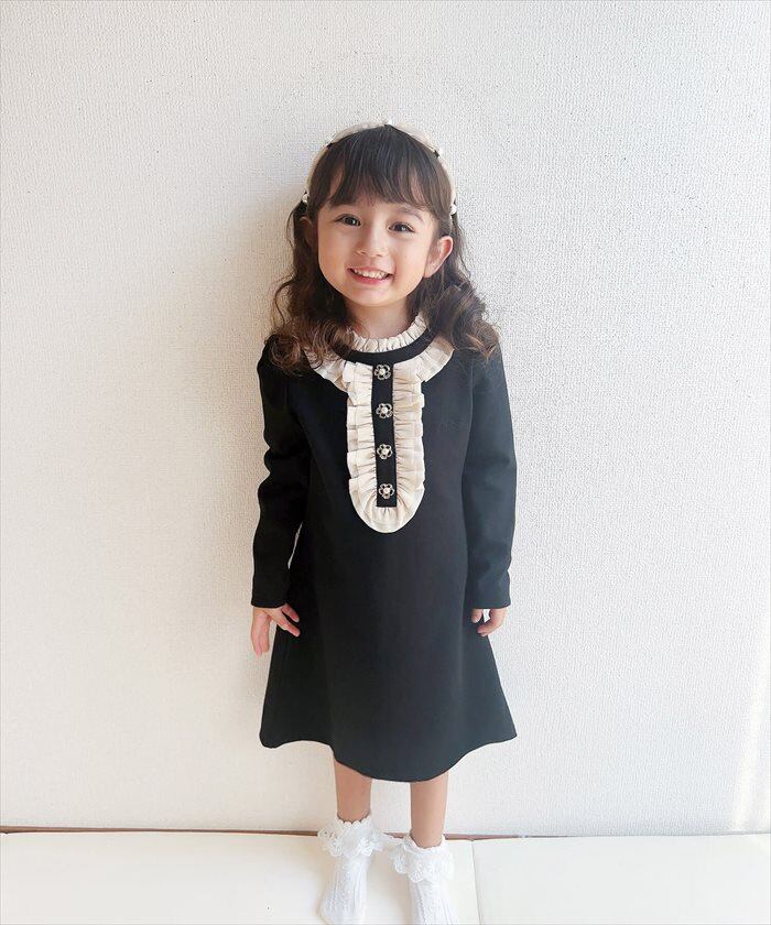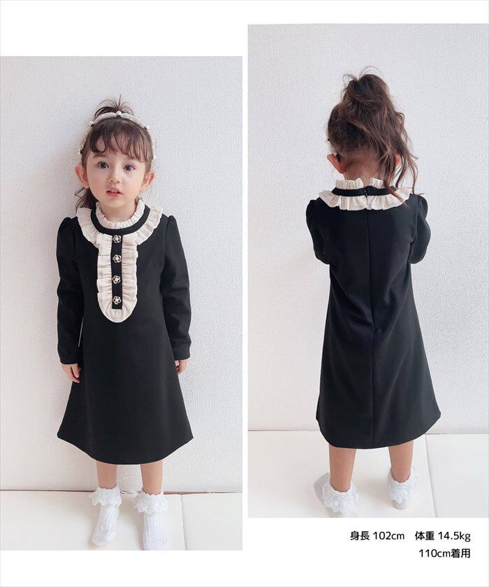 ワンピース キッズ 長袖 通販 ドレスワンピース 10002523 子供 ドレス 女の子 結婚式 パーティ 発表会 卒園式 入園式 入学式 七五三 フリル Aライン 黒 ブラック かわいい オシャレ おしゃれ フォーマル 子ども服 子供服 キッズファッション