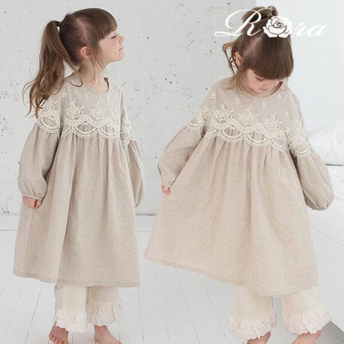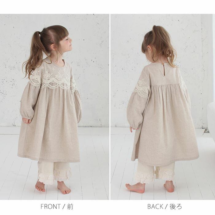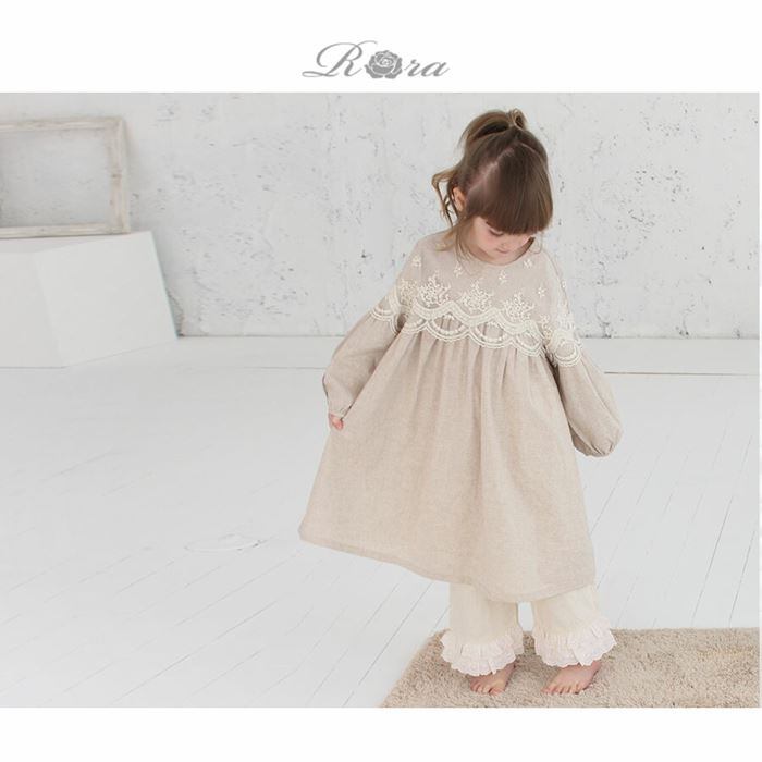 ・肩を覆うレース遣いや、ふんわり広がるシルエットが、子供服Roraならではのこだわりのポイントです。