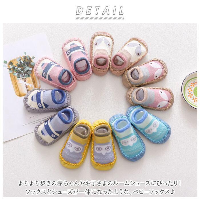 ・よちよち歩きの赤ちゃんやお子さまのルームシューズにぴったり!ソックスとシューズが一体になったような、ベビーソックス♪