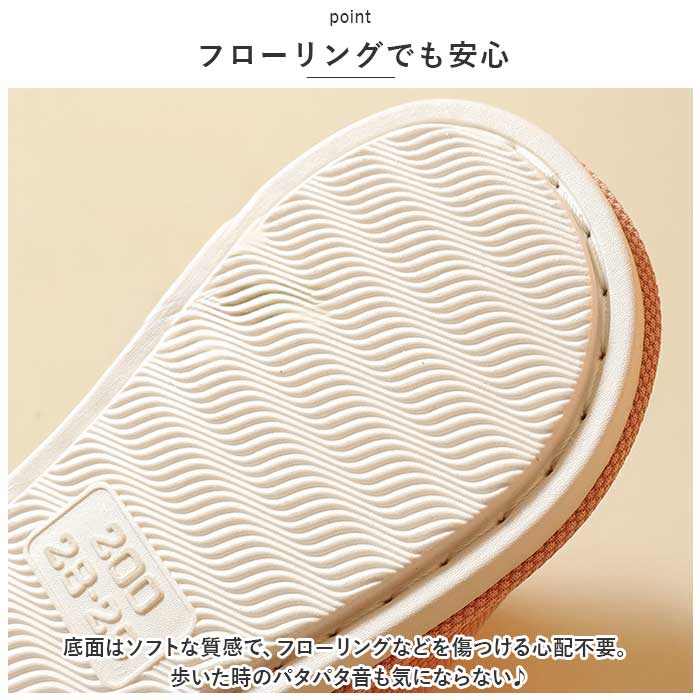 ・底面はソフトな質感で、フローリングなどを傷つける心配不要。歩いた時のパタパタ音も気にならない♪