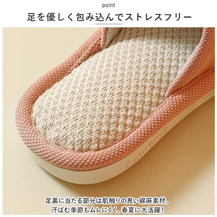 ・足裏に当たる部分は肌触りの良い綿麻素材。汗ばむ季節もムレにくく、春夏に大活躍!