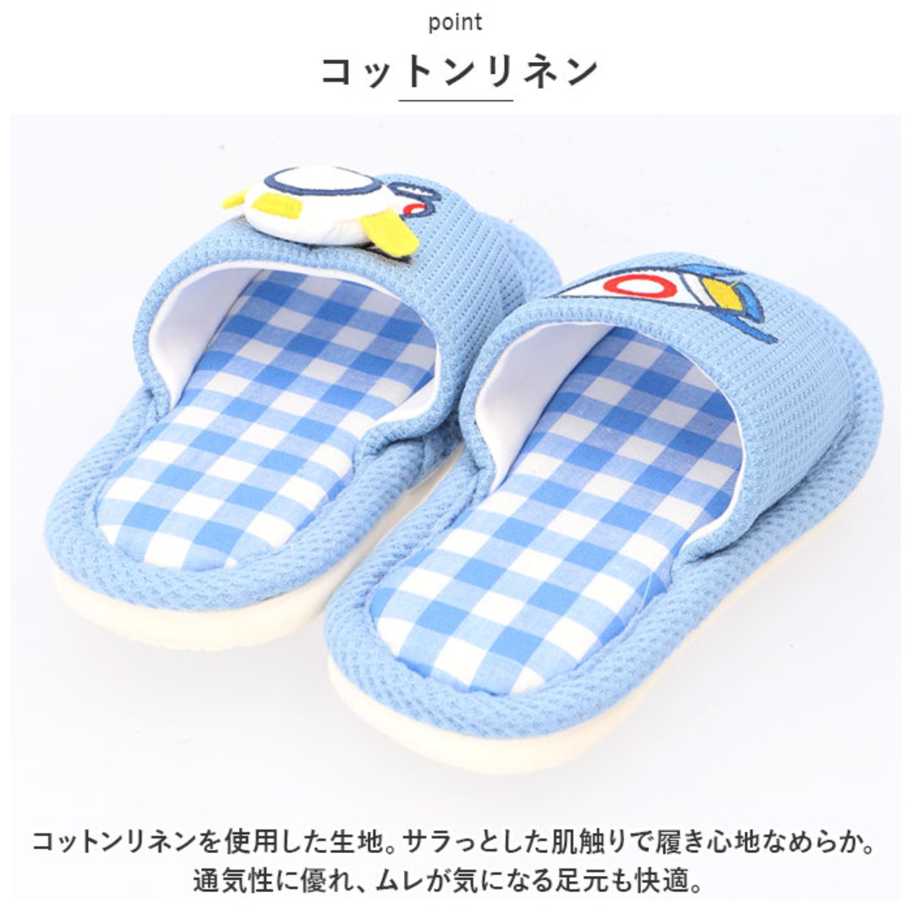 ・コットンリネンを使用した生地。サラっとした肌触りで履き心地なめらか。通気性に優れ、ムレが気になる足元も快適。
