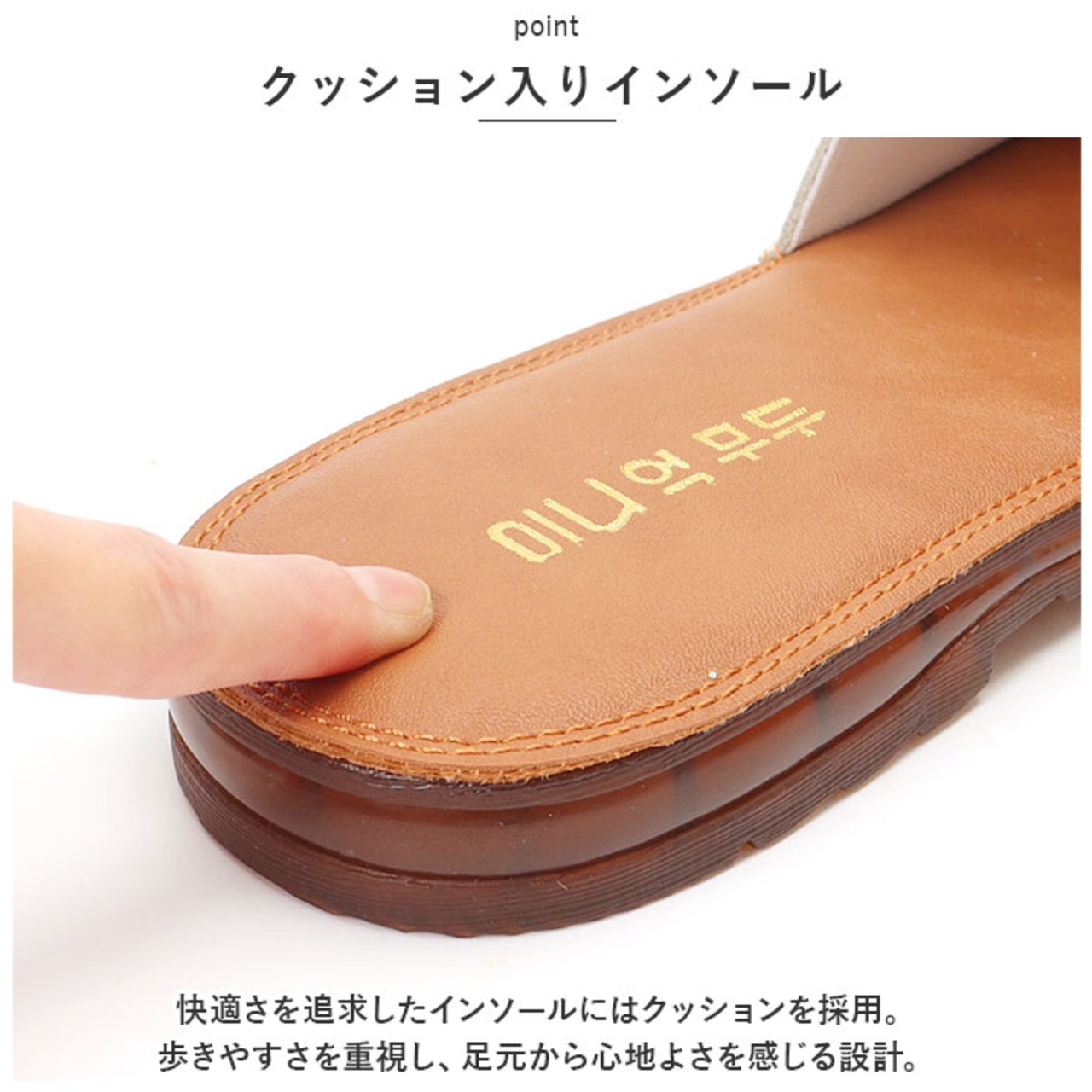 ・快適さを追求したインソールにはクッションを採用。歩きやすさを重視し、足元から心地よさを感じる設計。