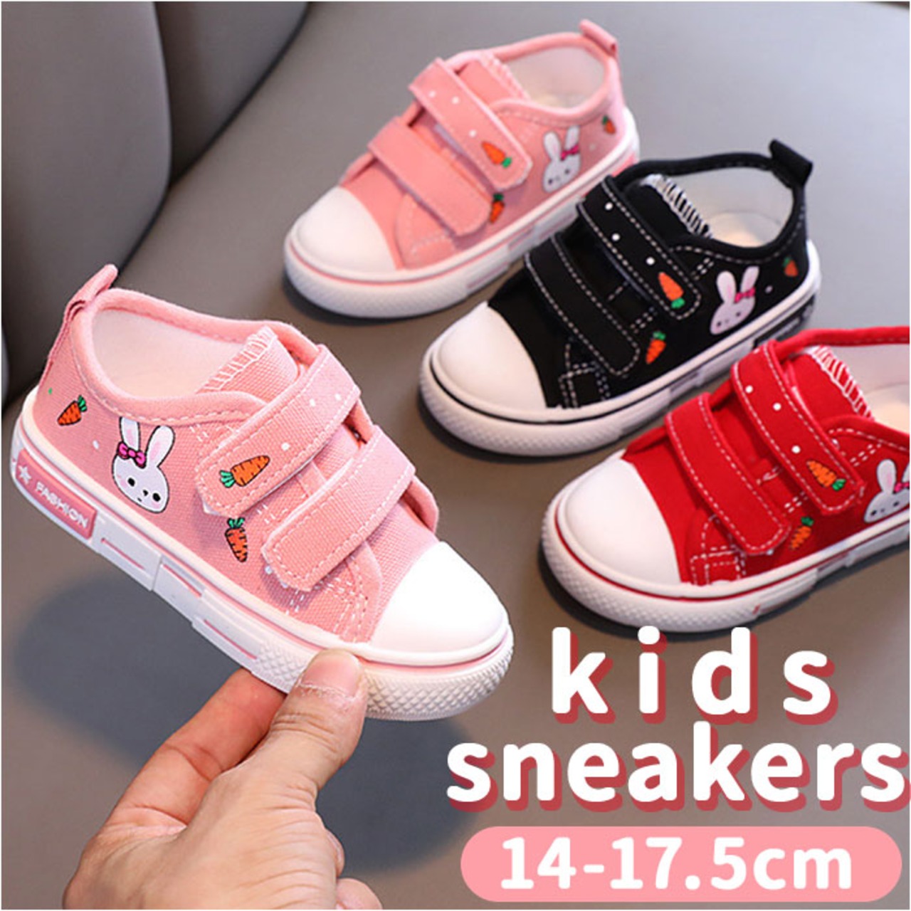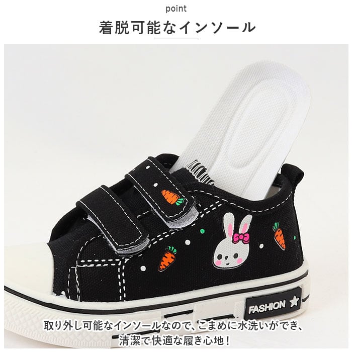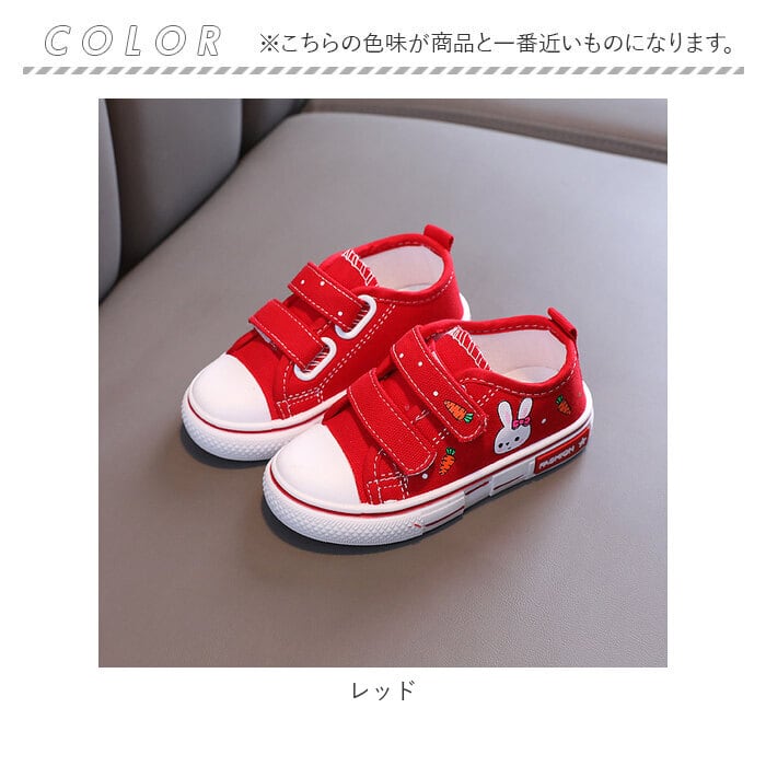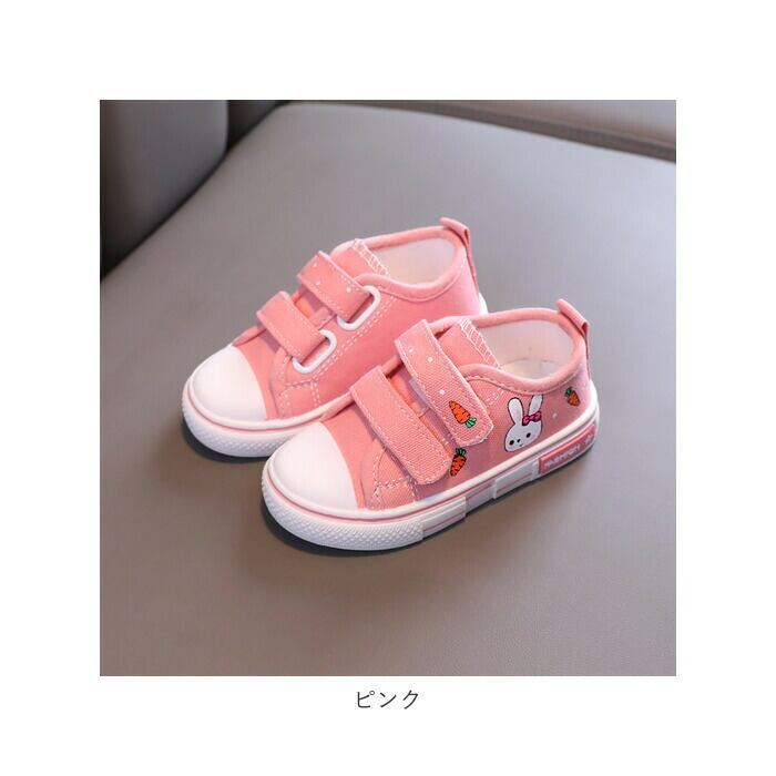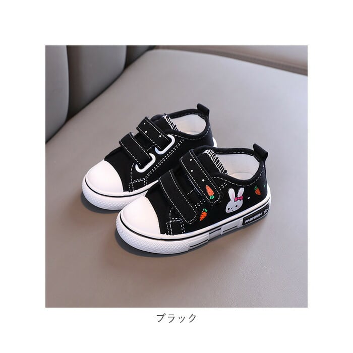 ・うさぎのプリントが可愛い!紐を結ぶ必要のないキッズスニーカーが登場!