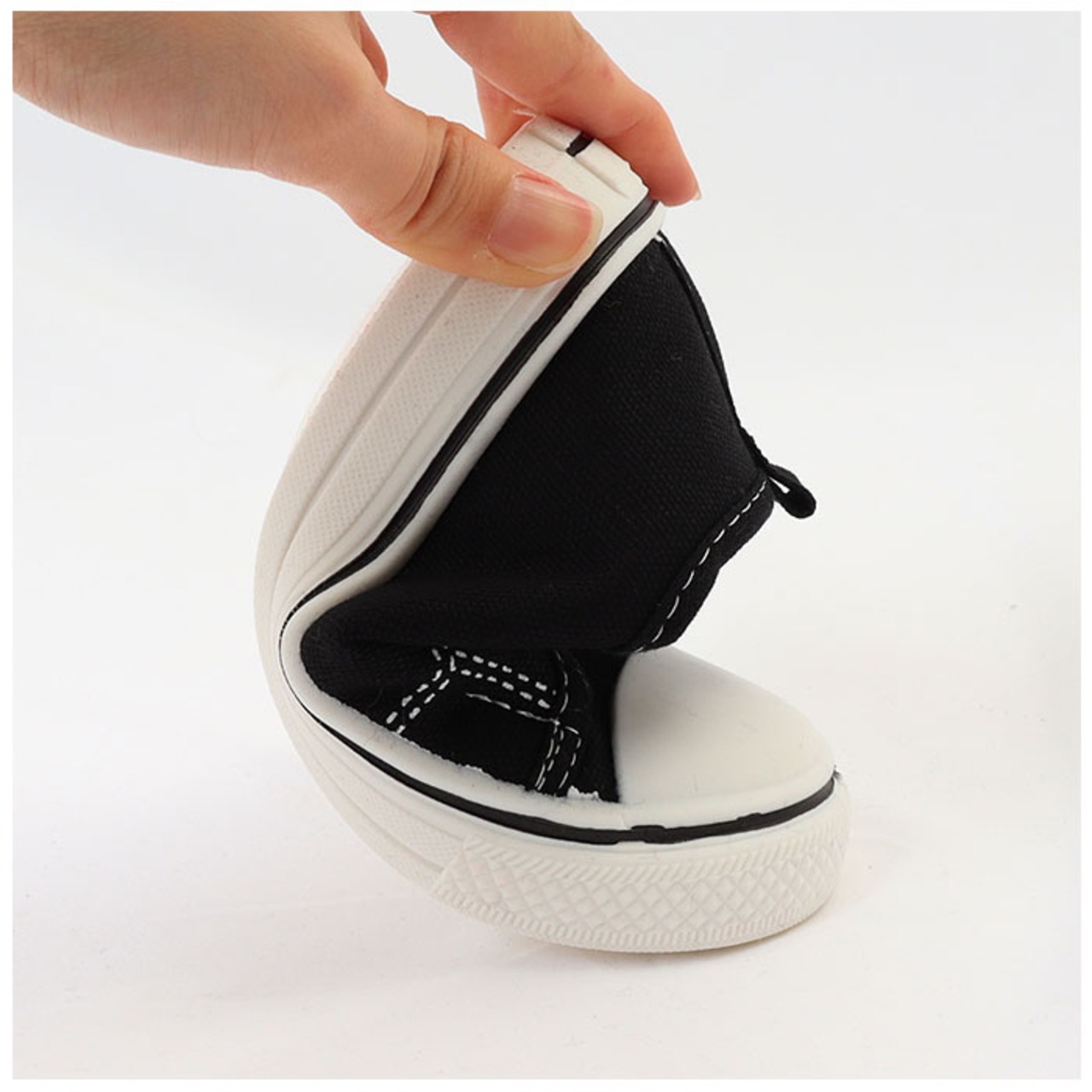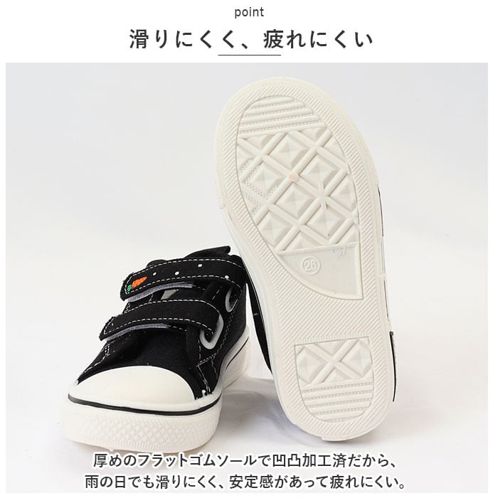 ・厚めのフラットゴムソールで凹凸加工済だから、雨の日でも滑りにくく、安定感があって疲れにくい。
