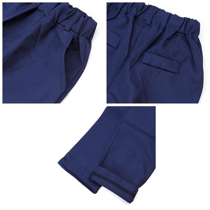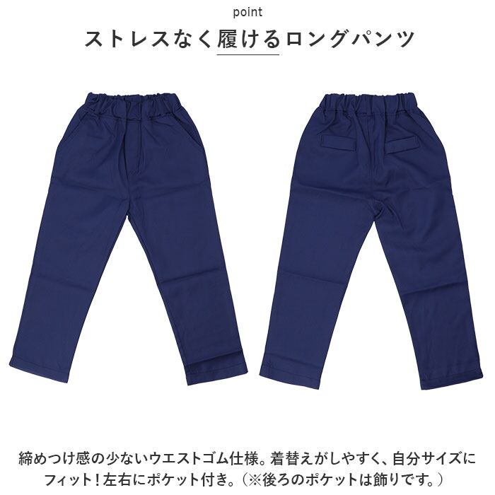 ・締めつけ感の少ないウエストゴム仕様。着替えがしやすく、自分サイズにフィット!左右にポケット付き。(※後ろのポケットは飾りです。)