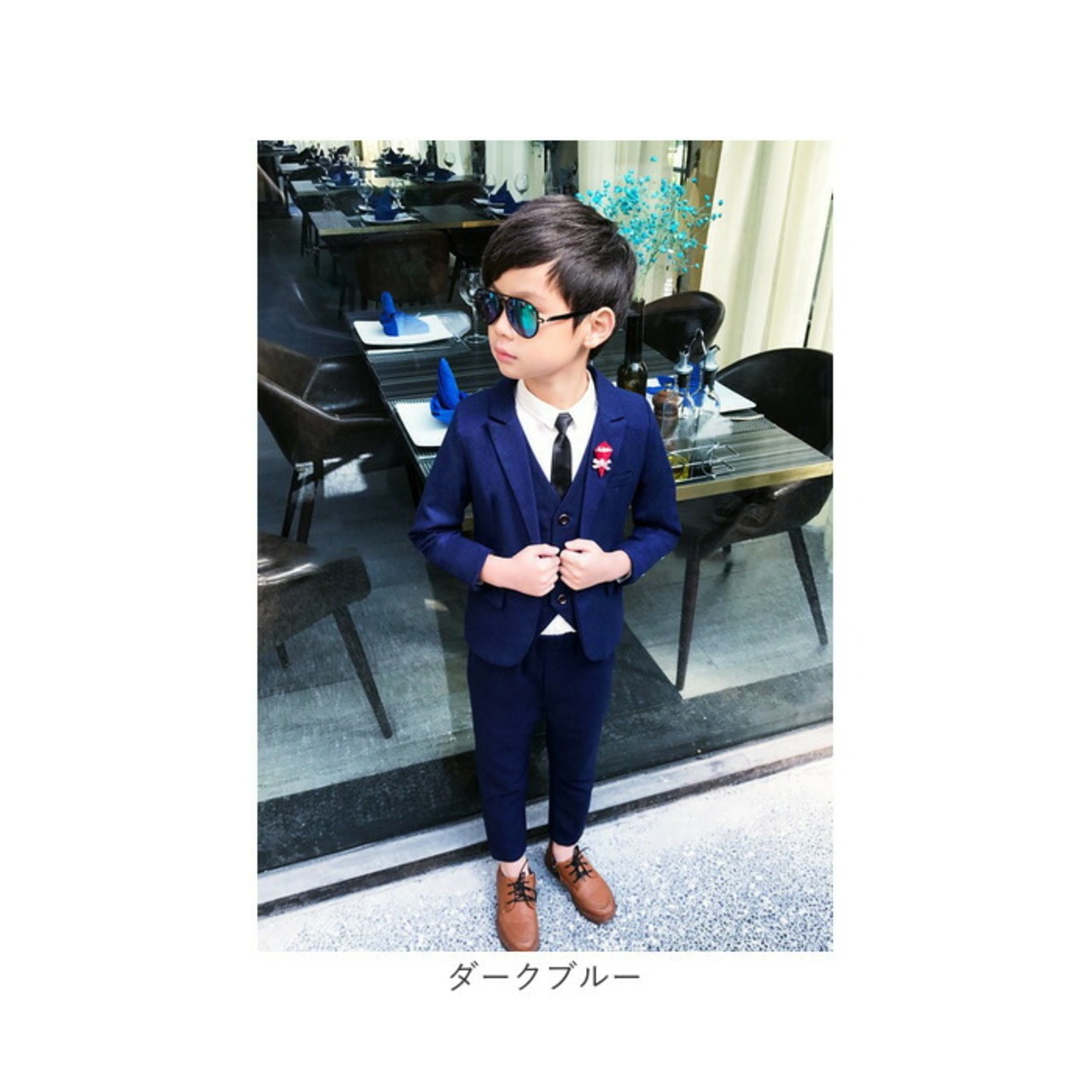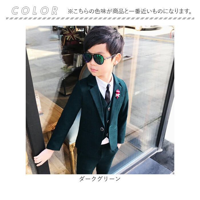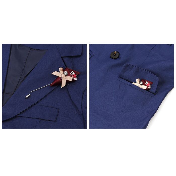 ・ジャケット、ベスト、長袖シャツ、ロングパンツ、ラペルピンの5点セット。大人顔負けのスタイリングが完成☆