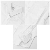 ・フロントボタン付きの、スタンダードなカタチに仕立てたシャツ。単体使いもしやすいホワイトカラー。
