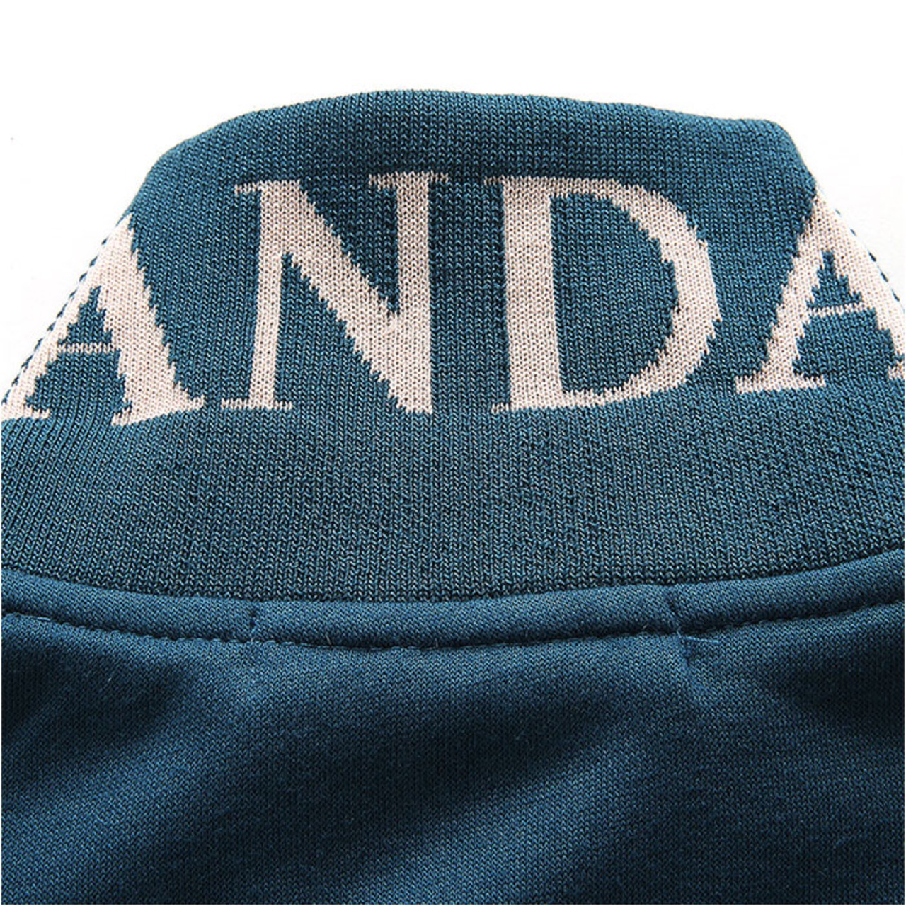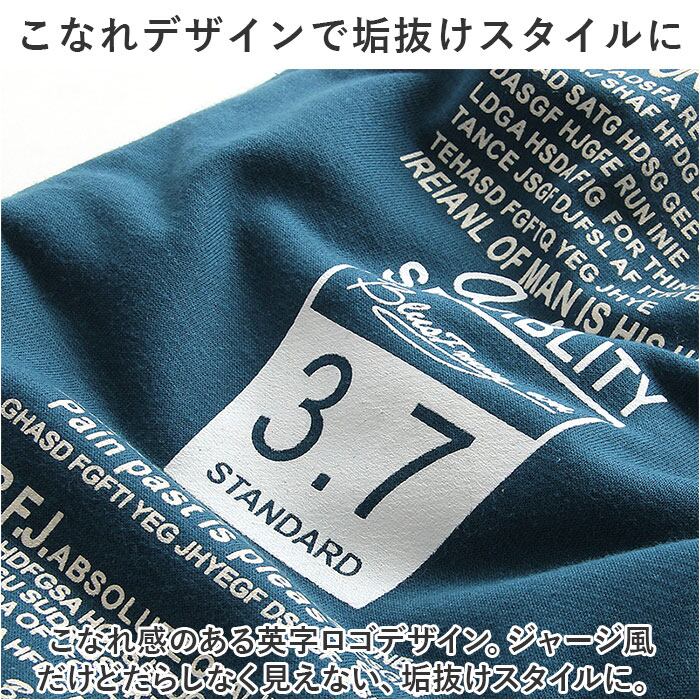 ・こなれ感のある英字ロゴデザイン。ジャージ風だけどだらしなく見えない、垢抜けスタイルに。