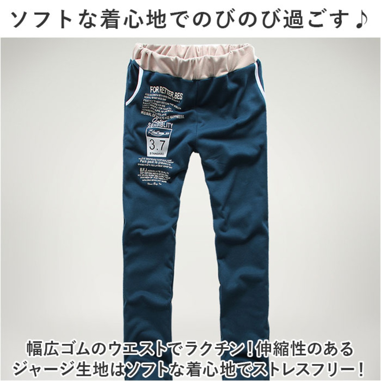 ・幅広ゴムのウエストでラクチン!伸縮性のあるジャージ生地はソフトな着心地でストレスフリー!