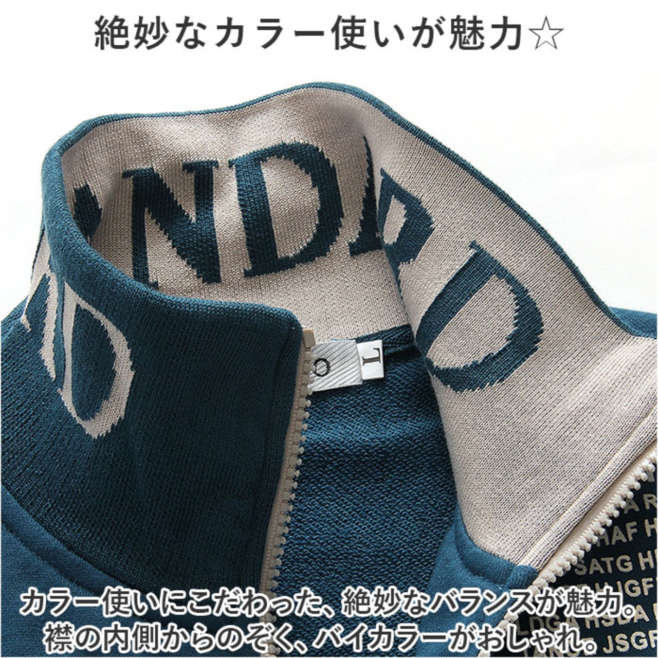 ・カラー使いにこだわった、絶妙なバランスが魅力。襟の内側からのぞく、バイカラーがおしゃれ。