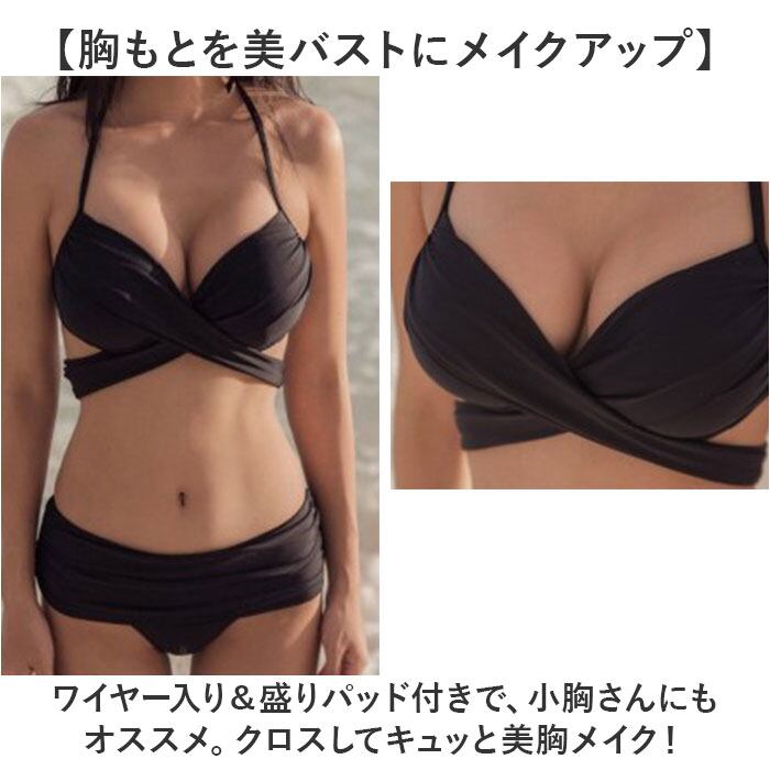 ・ワイヤー入り&盛りパッド付きで、小胸さんにもオススメ。クロスしてキュッと美胸メイク!