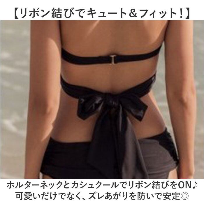 ・ホルターネックとカシュクールでリボン結びをON♪可愛いだけでなく、ズレあがりを防いで安定◎